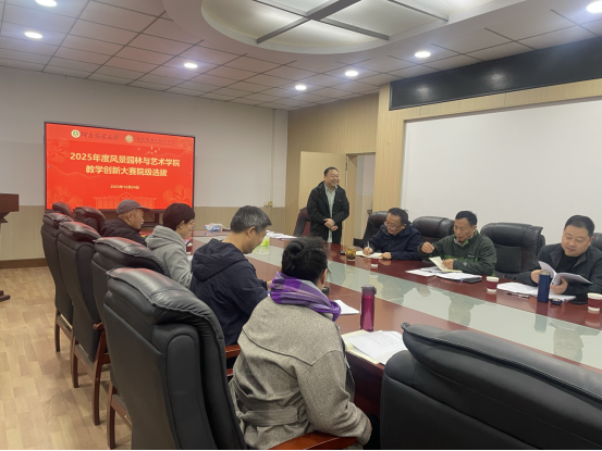 为持续深化教学改革,激发教师教学创新活力,提升课堂教学质量,10月24日,河南农业大学风景园林与艺术学院2025年度教学创新大赛院级选拔在13号楼第一会议室顺利举行。本次选拔得到学院高度重视,特邀校教学督导组组长肖传斌教授,理学院国家级一流课程负责人、河南省首届本科课堂教学创新大赛一等奖获得者李辉教授莅临指导。大赛由院长李永华主持。参赛教师们精神饱满,围绕各自课程展开教学创新展示。