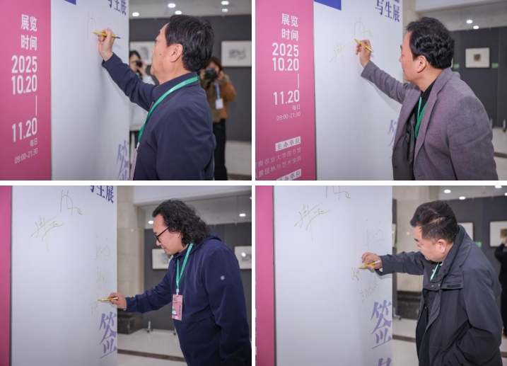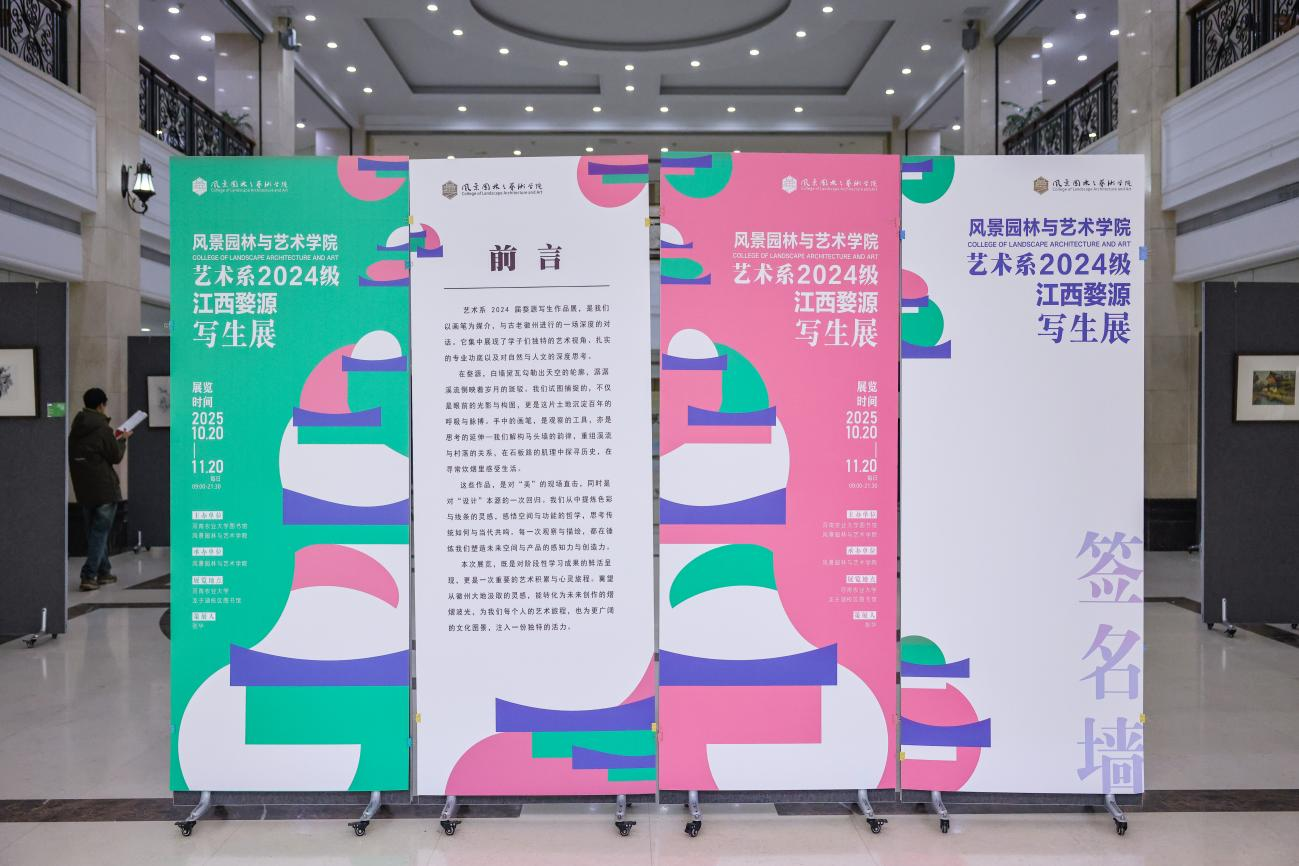 在热烈的氛围中,周卫校长宣布河南农业大学风景园林与艺术学院艺术系2024级江西婺源写生展正式开幕!在学院领导和老师的引导下,嘉宾在签名墙上留下签名,并一同参观此次作品展。