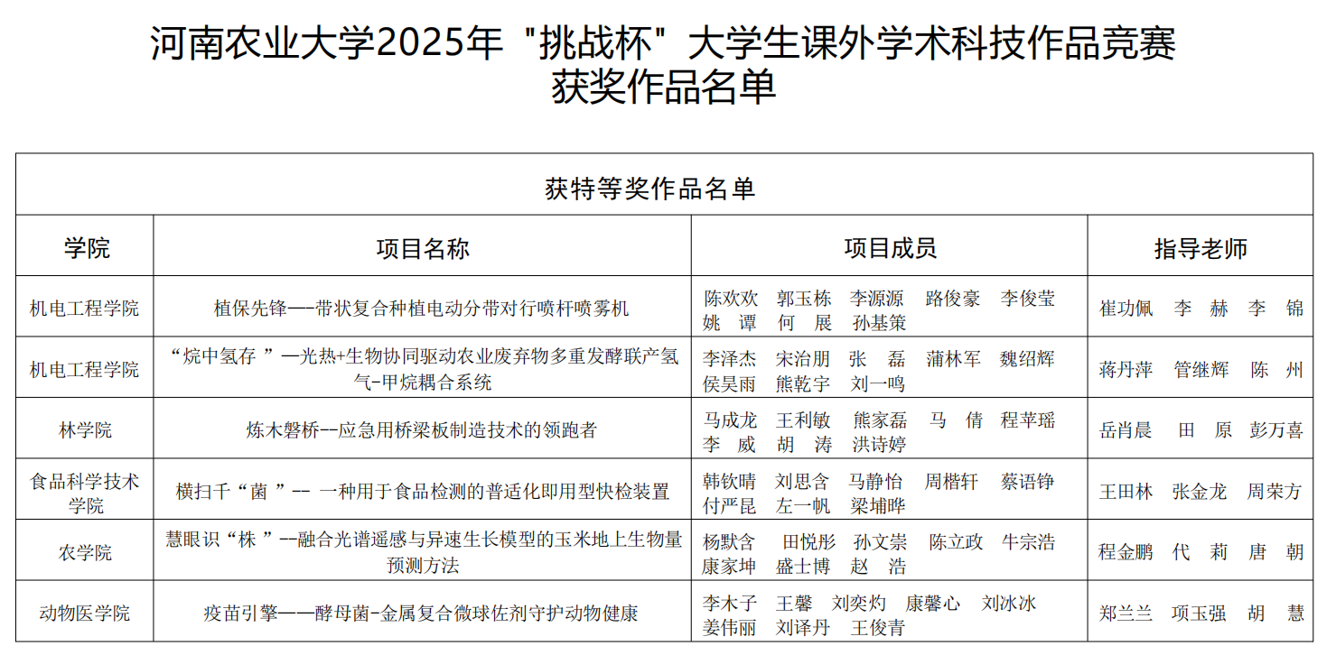 喜报!我院师生在河南农业大学2025年 “挑战杯”大学生课外学术科技作品竞赛中续写辉煌