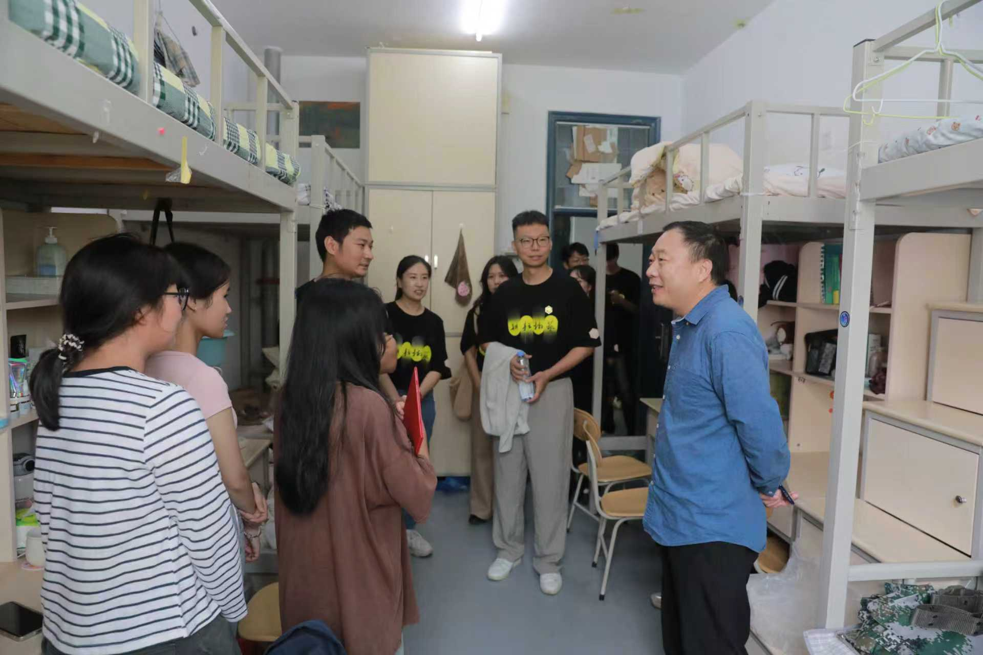 为更好地助力2025级新生适应大学生活,传递学院的关怀与温暖,9月12日下午,我院院长李永华,院党委副书记赵九阳,院团委书记徐珂,院团委副书记芦嘉俊,院团委老师史玥、蔚洪波深入新生宿舍开展走访慰问活动。
