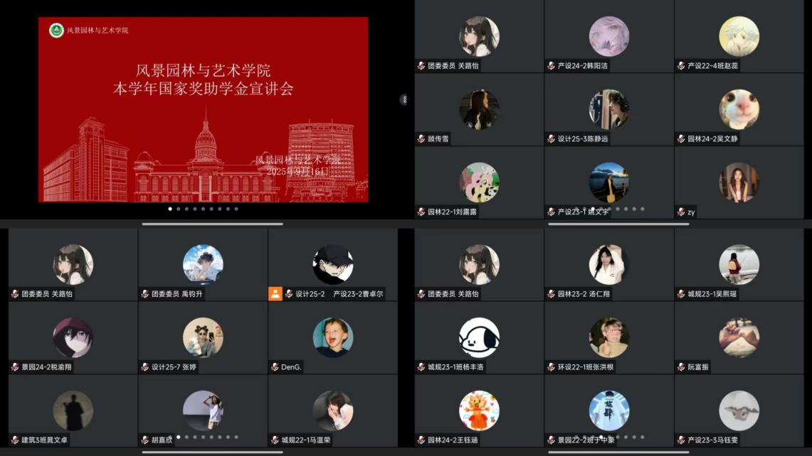 2025年9月16日下午,我院通过线上方式组织召开2025学年国家奖助学金评审发放工作专题会议,就本年度国家奖助学金评审相关事宜进行部署和说明。各系部负责人、各年级班级班长支书以及工作相关人员参加会议。