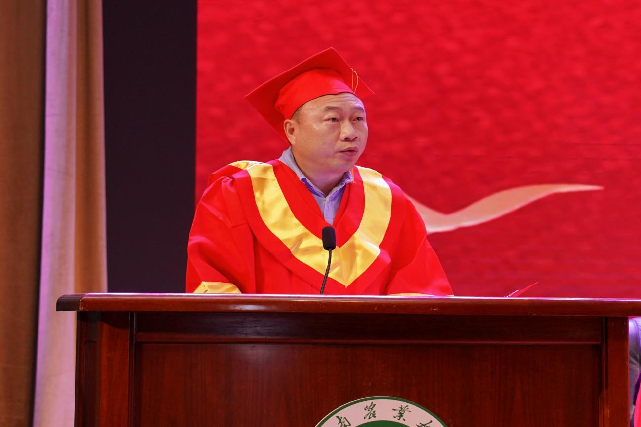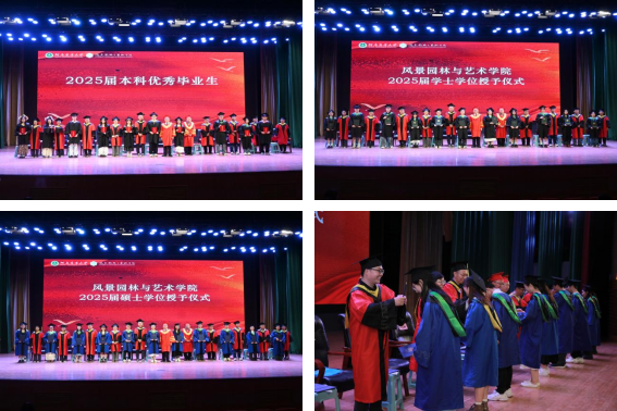 赵九阳宣读《关于表彰2025届本科优秀毕业生的决定》;阴予兴宣读《关于表彰2025届本科优秀毕业论文(设计)及优秀指导教师的决定》、《河南农业大学风景园林与艺术学院关于学位授予的决定》。
