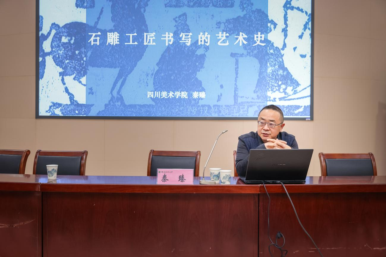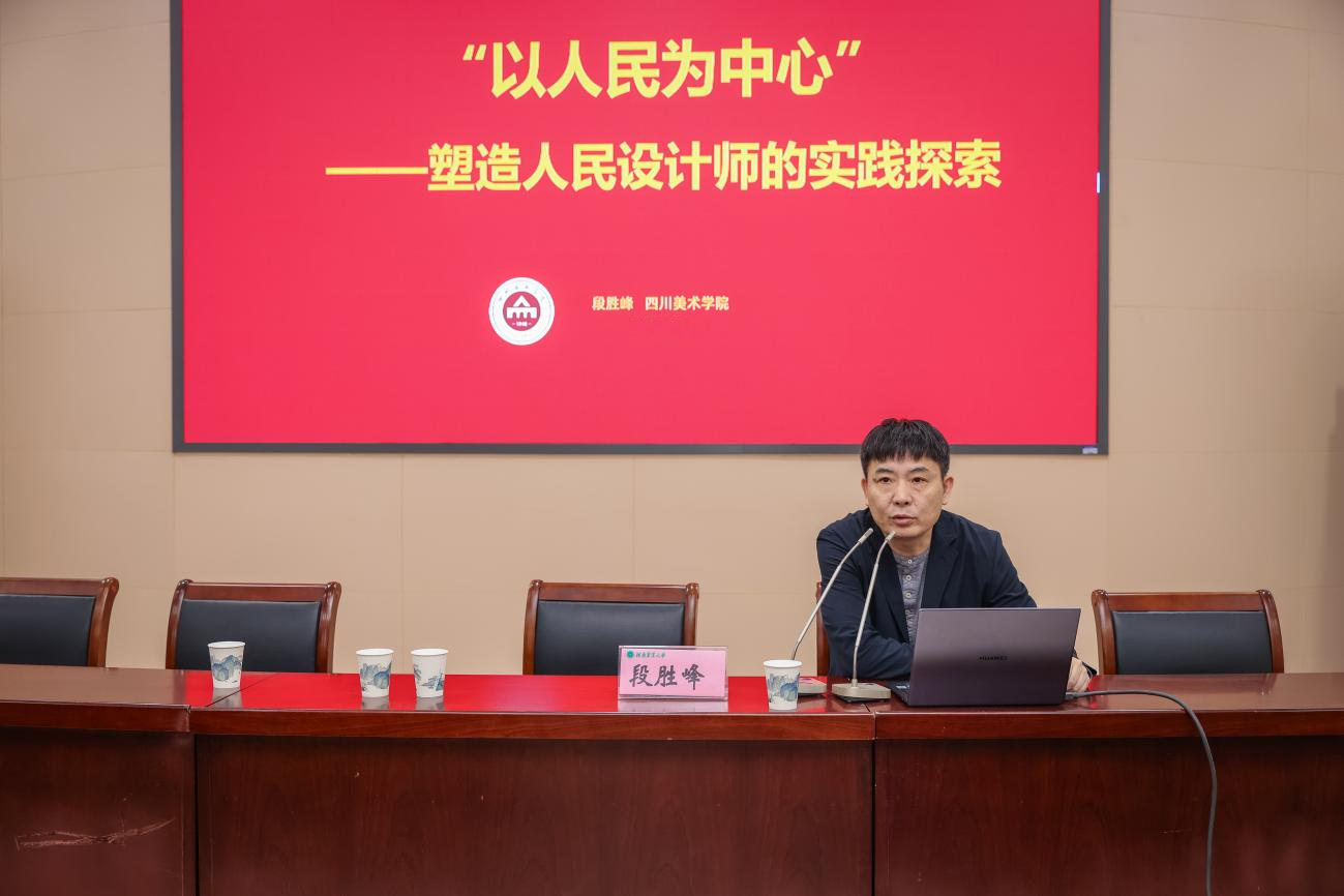 4月26日上午,我院特邀四川美术学院副校长段胜峰教授、大足学中心主任秦臻教授于文化路校区300人报告厅举办两场主题分别为《塑造“人民设计师”的川美实践》和《石雕工匠书写的艺术史》的学术讲座。讲座由艺术系主任孟滨主持,艺术系全体教师和部分学生参加本次讲座。
