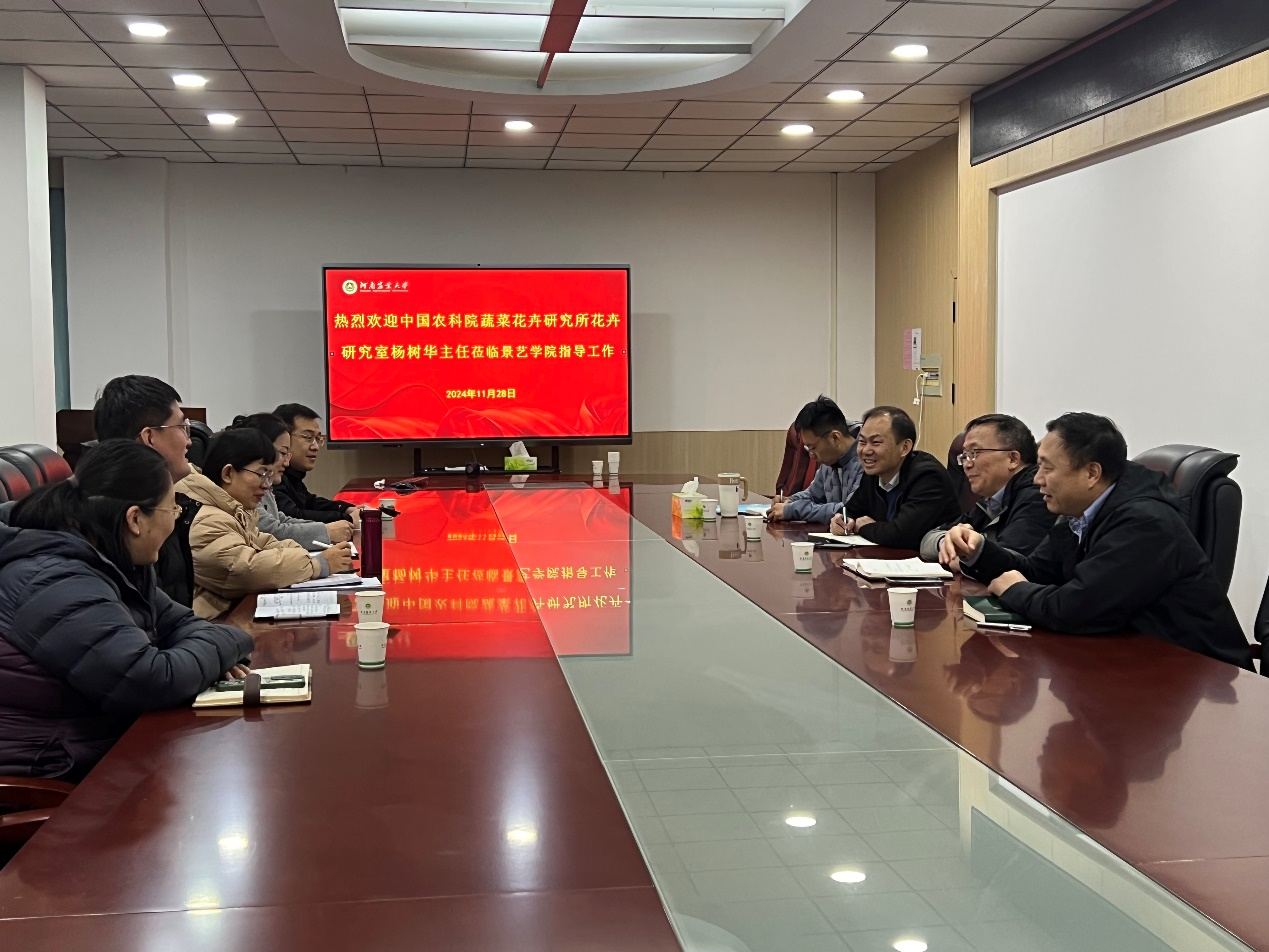 为落实学校加强与中国农业科学院融合发展的具体举措,推动学院与中国农业科学院蔬菜花卉研究所的合作,11月28日下午中国农业科学院蔬菜花卉研究所花卉研究室主任杨树华研究员到我院交流洽谈,院党委书记侯永华、副书记赵九阳、副院长李永华、 园林系主任刘艺平及教师代表参加会谈。