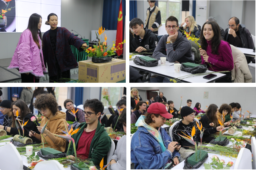 9日上午,我校园林系教师以“竹子”为切入点为营员们介绍了中国园林竹文化与插花艺术,使他们了解了中国园林艺术的精髓和插花艺术的历史。随后,在教师指导下,营员们亲手制作插花作品,体验了中国园林艺术的美学和哲学。