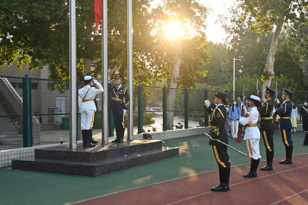 9月23日上午,我院于文化路校区操场举行“喜迎祖国华诞 争当时代青年”升国旗仪式。院党委副书记赵九阳、副院长李永华及学院教师代表出席本次仪式,2023级、2024级全体学生参加本次仪式。升旗仪式由院团委书记徐珂主持。