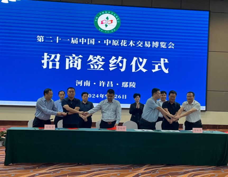 在招商签约仪式上,李永华代表学院与鄢陵县政府签订合作协议,希望通过加强校企联合,发挥各自优势,为鄢陵苗木产业转型升级提供服务。