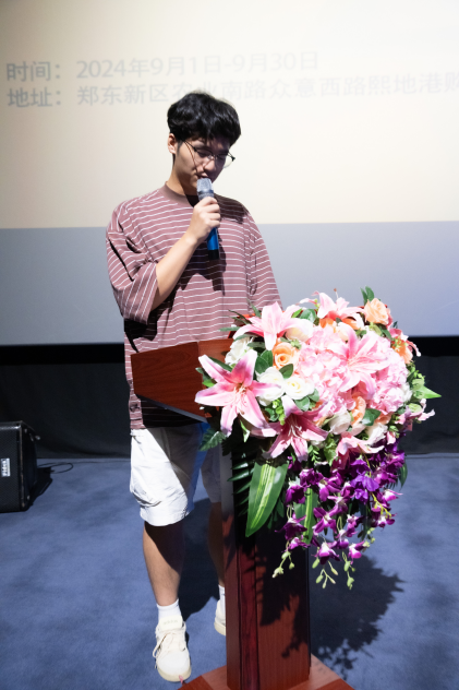 主持人介绍活动背景、目的和到场嘉宾,我院学生会主席何彦池同学分享自己对电影的独特理解和期待。