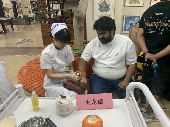 留学生们参观了医院商都中医药文化馆,了解中医药的起源与发展。体验了“中药香囊”制作和耳穴贴压、中医拔罐、针灸等多种中医特色疗法,“沉浸式”的体验中医文化。