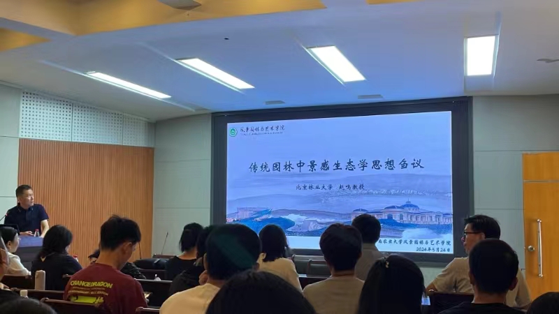 应风景园林园林与艺术学院邀请,5月24日上午,北京林业大学赵鸣教授在文化校区为学院师生作题为《刍议传统园林中景感生态学思想》的学术报告。学院相关专业师生参加了此次学术报告会,报告会由景园系主任刘保国主持。