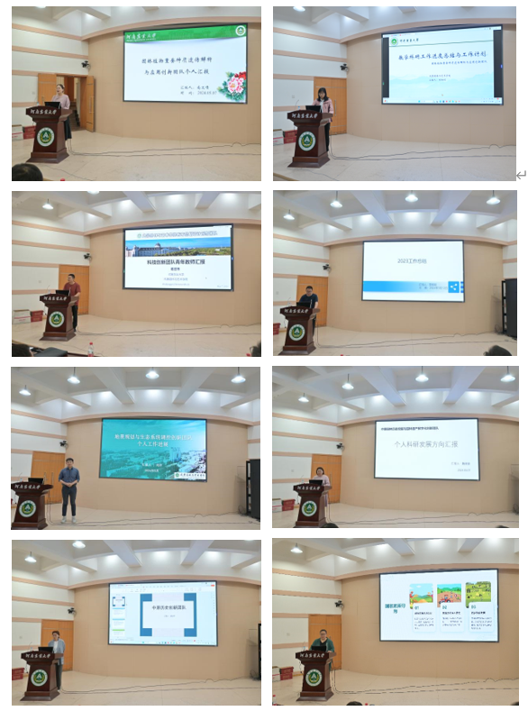会上,来自学院7个科技创新团队的14位青年教师代表汇报了个人近年来在教育教学、科研研究、社会服务、国际合作等方面取得的成绩,分析了存在的问题,并对下一步工作提出了明确、具体的计划。