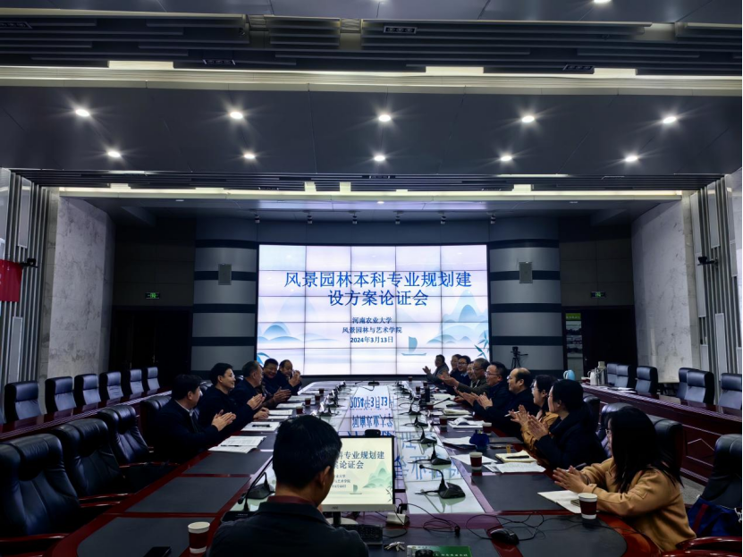 河南农业大学教务处副处长胡选振,风景园林与艺术学院党委书记侯永华、院长田国行、副院长李永华,风景园林专业负责人、系主任和教师代表等参加会议。会议由田国行主持,专家论证环节由许大为主持。