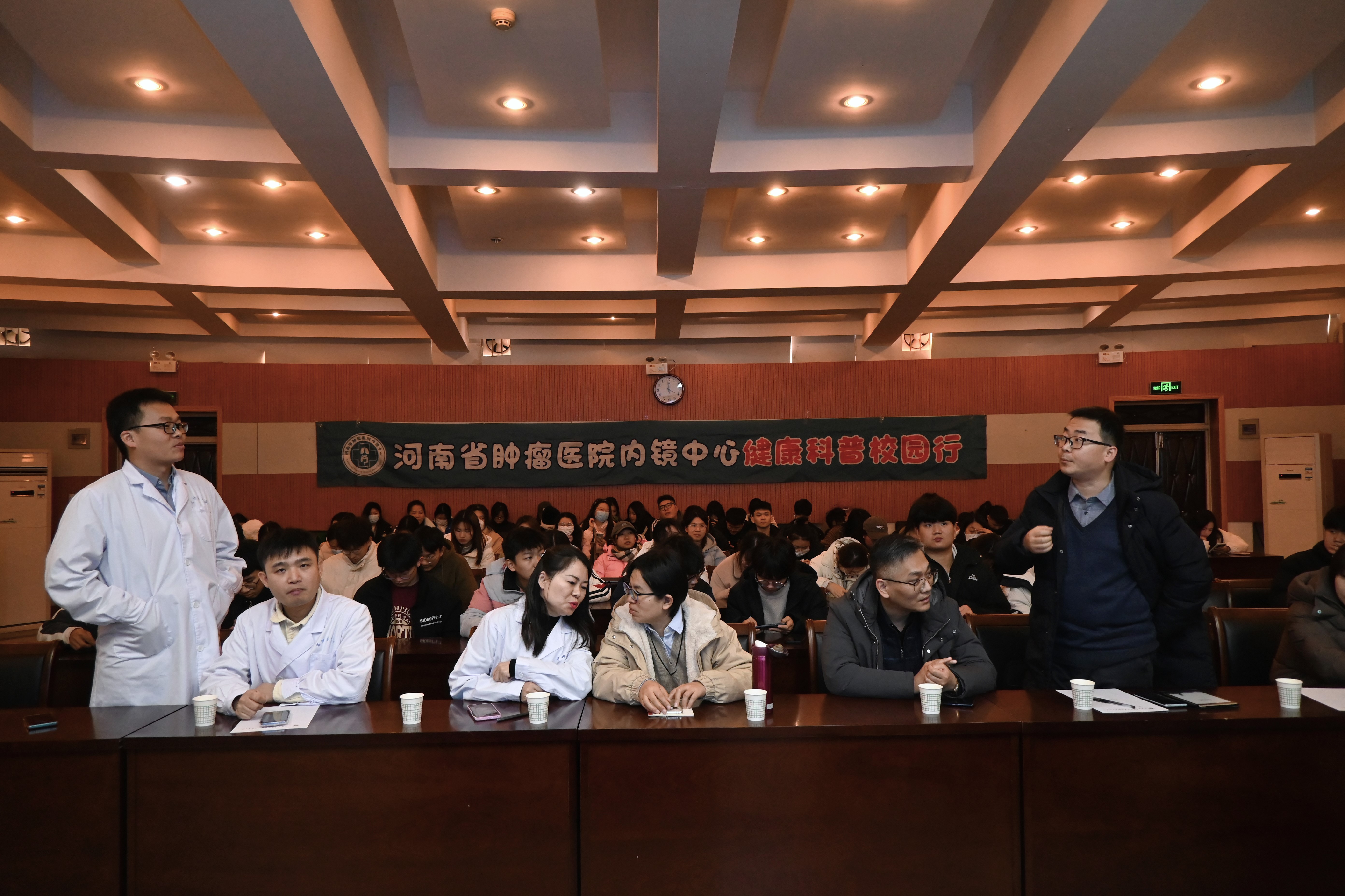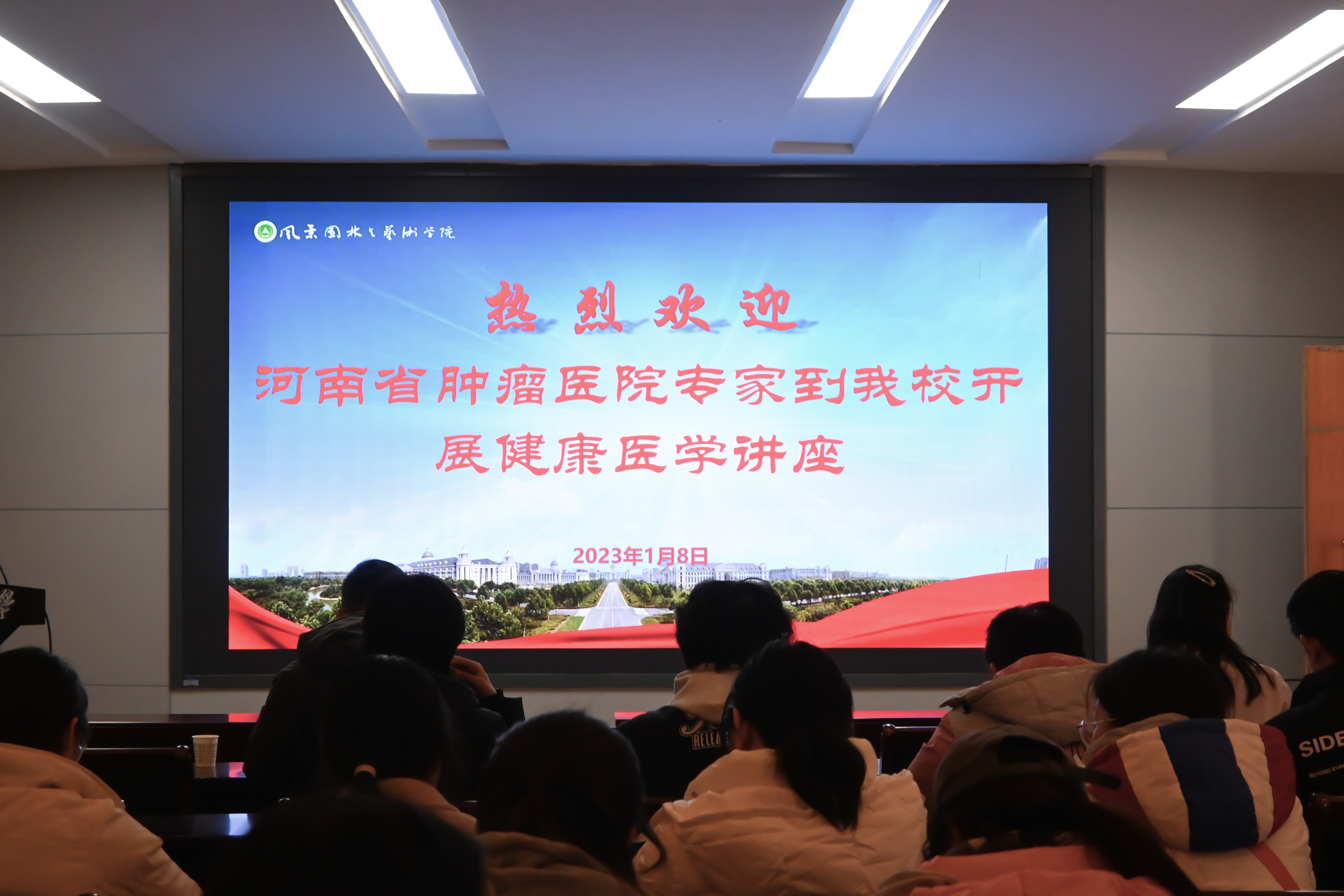 为增强学生的健康意识和生活素养,帮助学生养成良好的生活习惯,1月8日下午,河南省肿瘤医院专家莅临我校于文化路校区100人报告厅开展“精医重道,镜益求精”健康医学知识科普讲座,讲座由规划系主任雷雅凯主持,各年级班长支书、宿舍长代表参加活动。