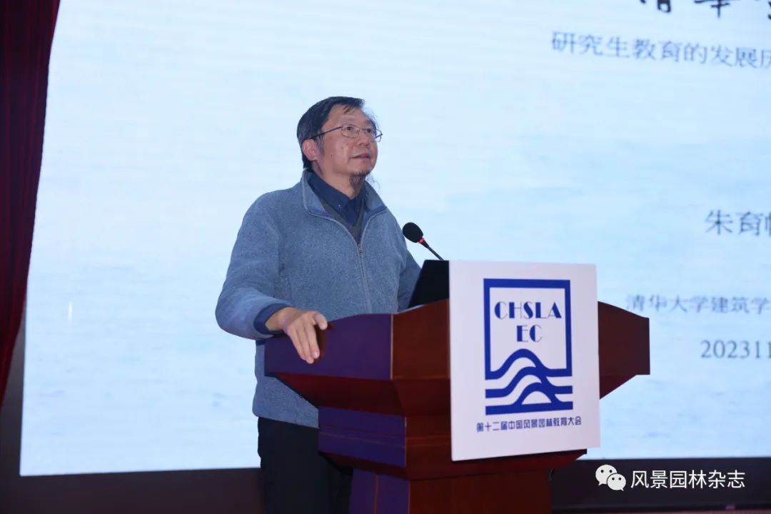 清华大学建筑学院景观学系副主任朱育帆教授进行了题为《清华景观研究生教育的发展历程与变局应对》的专题演讲,详细介绍了清华大学建筑学院景观学系研究生教育的发展历程,并指出风景园林研究生教育未来发展需要根据国内外专业形势变化,面向专业伦理整塑、专业教育核心认知与共识,关注科学技术的更新,坚持精深的国际化发展、联合开放性教学、师徒制教学基因导向和应用导向。