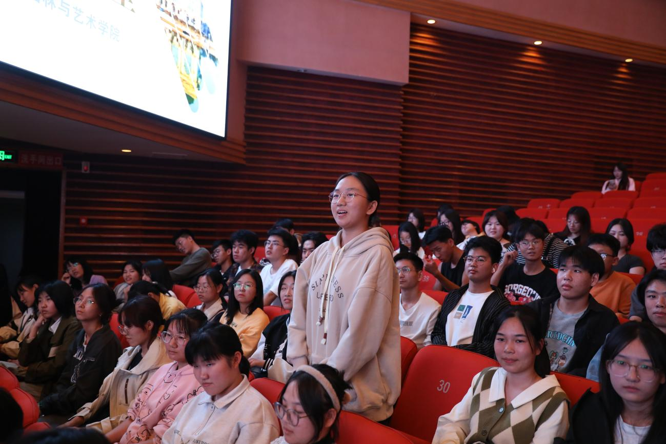 互动环节中,两位校友分别针对学生们提出的大学期间如何规划、考研与就业如何抉择、如何实现个人理想三个方面的问题耐心的做出讲解,不但为学生们解除了心中的困惑,而且还鼓励着学弟学妹们勇于追寻和探索,并牢记“明德自强,求实力行”的校训精神,为自己争一个平安顺遂、前程似锦的大学生活。