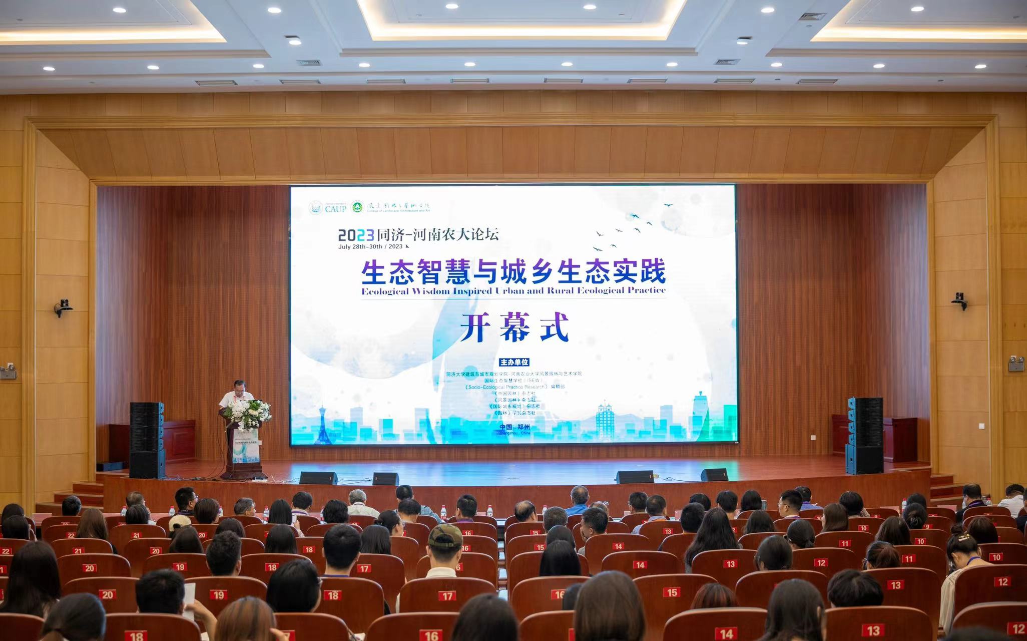 开幕式由河南农业大学风景园林与艺术学院院长田国行主持,同济大学党委副书记彭震伟、河南农业大学副校长尚富德、同济大学建筑与城市规划学院院长李翔宁分别致辞,讲堂主席及学术委员会主任象伟宁教授介绍2016年《生态智慧与生态实践之同济宣言》。