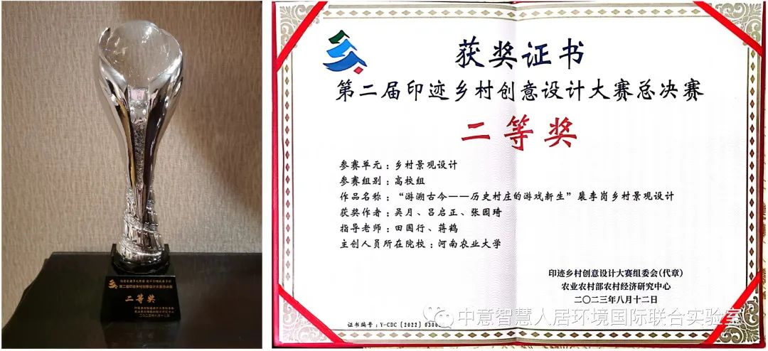 2023年8月15日,第二届印迹乡村创意设计大赛全国总决赛在重庆梁平落下帷幕,我院学生团队作品“游溯古今——历史村庄的游戏新生:裴李岗乡村景观设计”在此次比赛中获得了全国总决赛二等奖的佳绩。