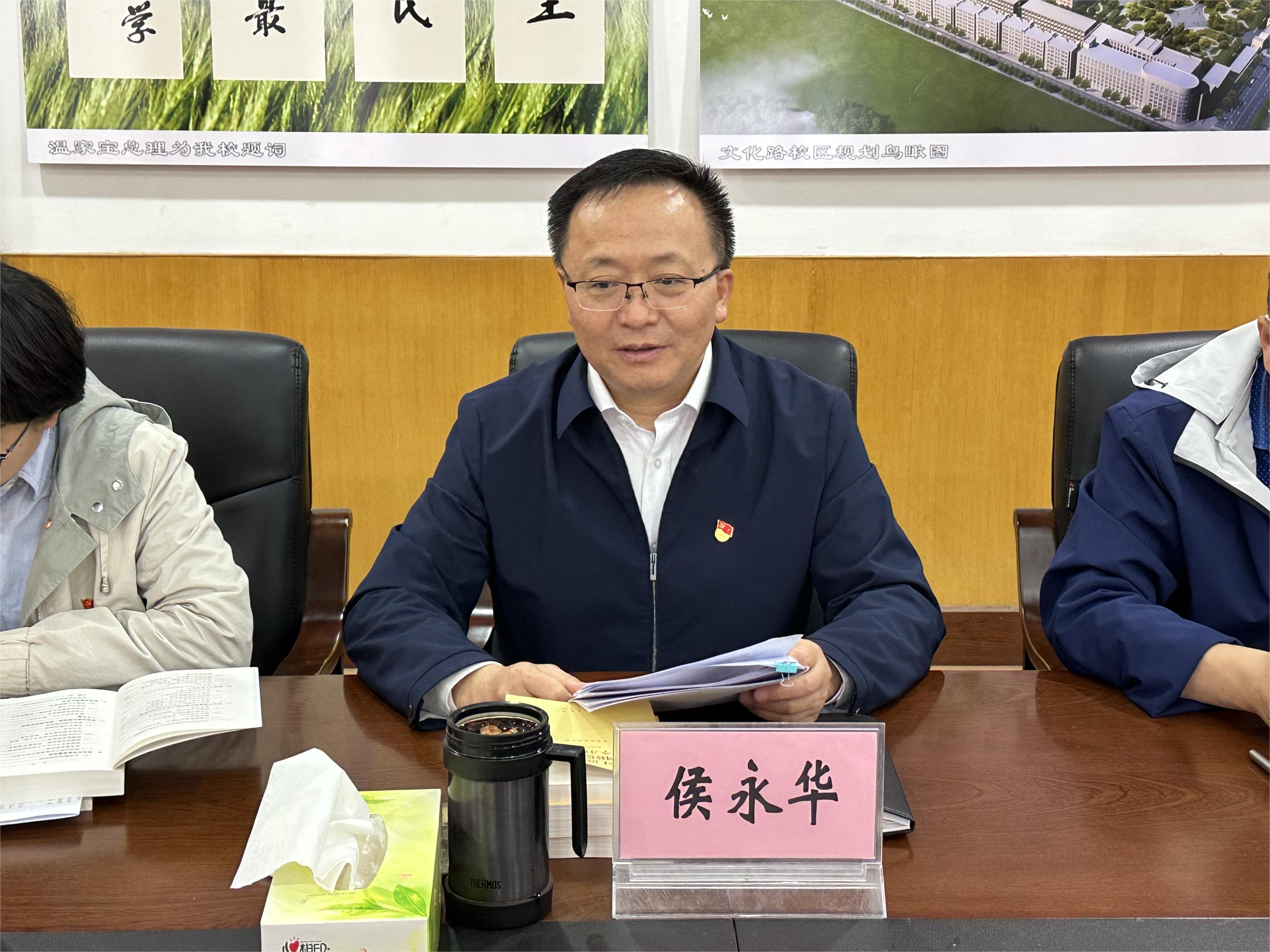 侯永华最后强调,要高度重视、抓紧抓实主题教育工作,把开展主题教育摆在突出位置,切实谋划好、组织好、推进好。要推动广大师生特别是领导干部不断把学习贯彻习近平新时代中国特色社会主义思想引向深入,既要全面系统掌握这一思想的基本观点、科学体系,又要把握好这一思想的世界观、方法论,切实提升主题教育质效。要坚持学思用贯通、知信行统一,一体推进理论学习、调查研究、解决问题、推动发展等工作,着力解决政治素养、能力本领、担当作为等方面的问题,做到以学铸魂、以学增智、以学正风、以学促干。要检视问题,突出问题导向,俯下身子干实事、谋实招、求实效,推动学院各项事业高质量发展。