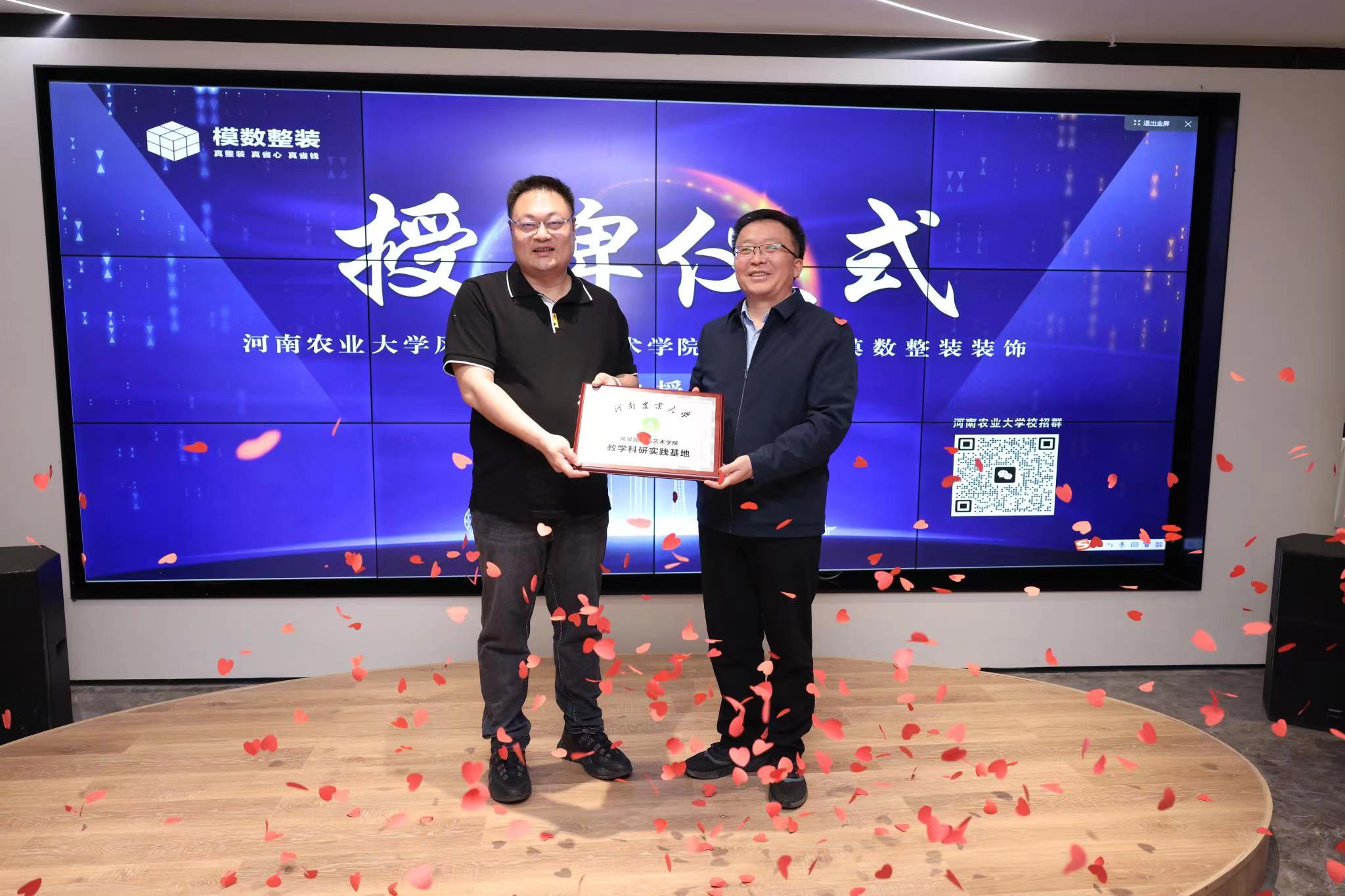为提高我院艺术系教学质量,提高就业率,开拓学生眼界,3月29日上午,我院艺术系环境设计专业大学生社会实践基地授牌仪式在河南省模数整装装饰公司举行。学院党委书记侯永华,艺术系主任孟滨,副主任王娜、宁传华及环境设计专业教师代表,2020级全体学生及部分19级学生参加。