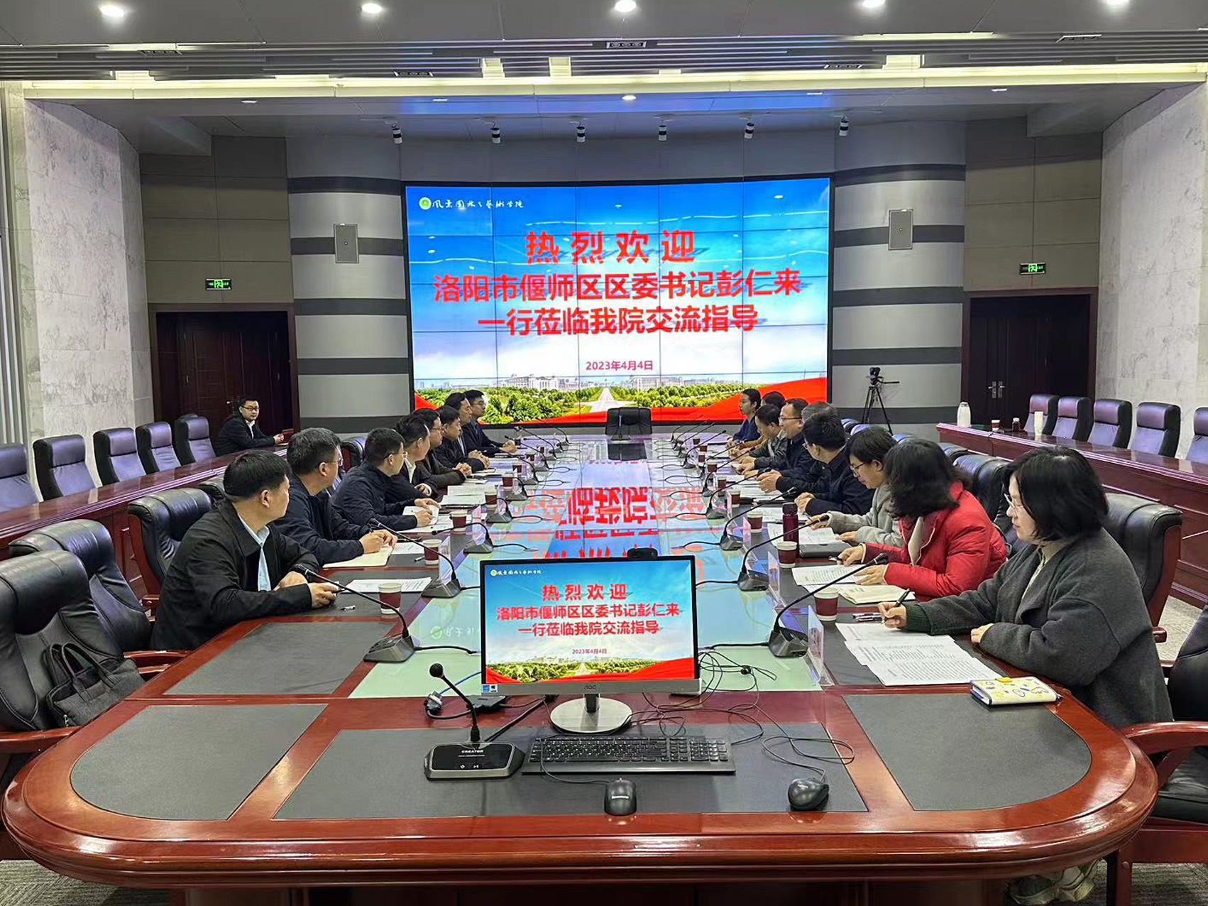 4月4日上午,洛阳市偃师区区委书记彭仁来,区委常委、邙岭镇党委书记高国龙,区委常委、区委办公室主任段昊,区委常委、区委办公室主任段昊,区委常委、统战部部申俊涛等一行8人到我院进行座谈交流。院党委书记侯永华、院长田国行、副院长李永华及园林系教师代表等出席座谈会。会议由侯永华主持。
