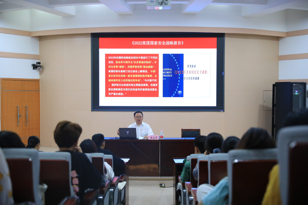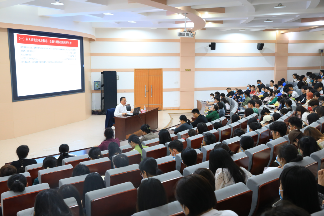 侯永华结合自己的学习和体会,围绕从全球视域看全面推进乡村振兴、全面推进乡村振兴的目标要求及主要任务、全面推进乡村振兴的建议等3个方面展开讲解,他强调,实现中华民族伟大复兴中国梦,必须振兴乡村,必须使农业强大、农村美丽、农民富裕。没有农业农村的现代化,没有农村的繁荣富强,没有农民的安居乐业,国家现代化是不完整、不全面、不牢固的。他希望广大师生要充分发挥党员先锋模范作用,增强乡村振兴的责任感、使命感、紧迫感。