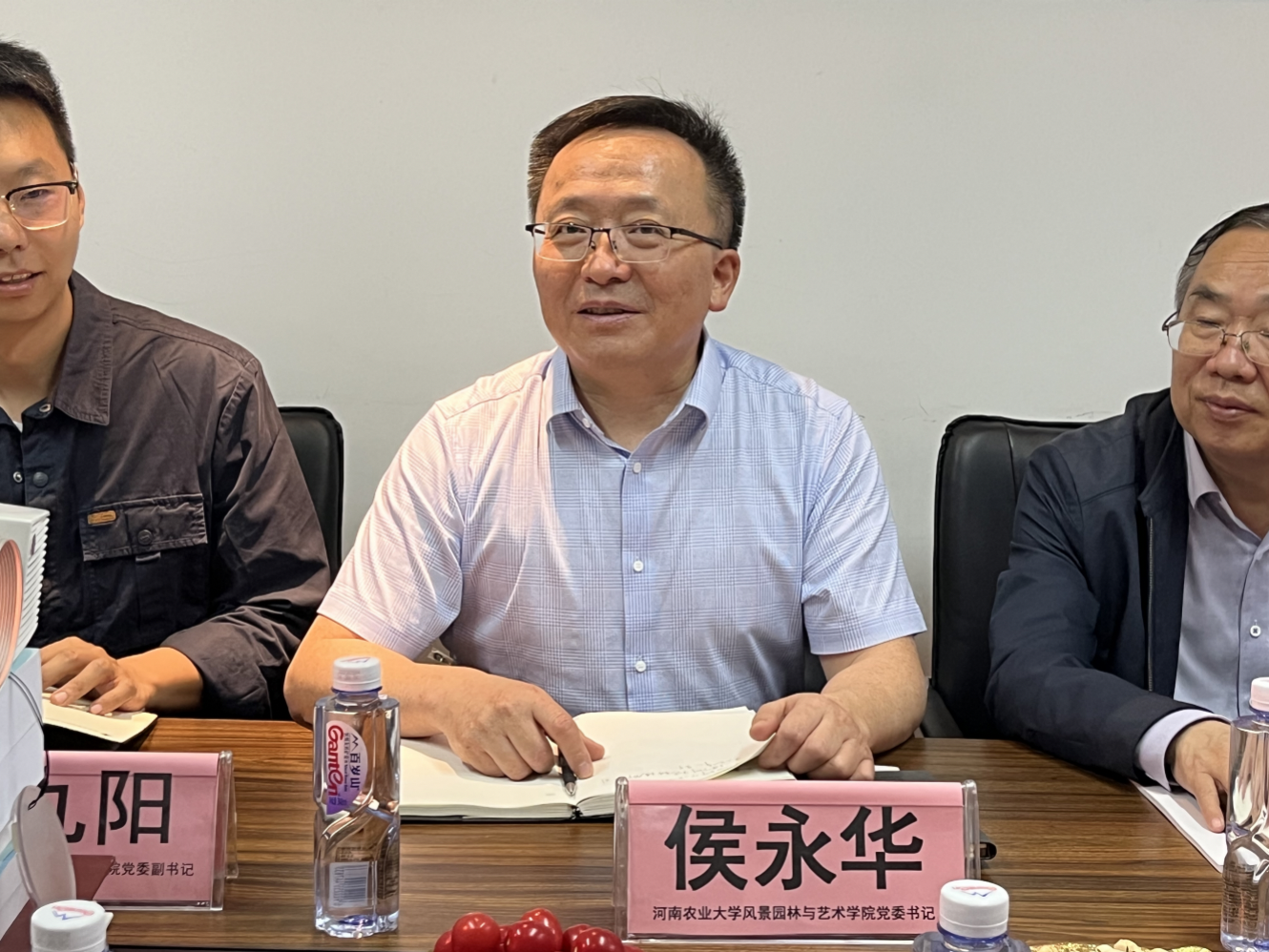 我院1992级园林专业杰出校友、绿洲生态环境有限公司董事长史屹峰对尚富德一行的到来表示热烈欢迎。他介绍了绿洲生态环境有限公司近年来尤其是3年疫情期间所取得的成绩,对学校毕业生的综合素质给予了高度评价,并希望更多的优秀学子加入企业,校企双方持续在人才培养、科学研究、产教研融合、平台建设、实践基地等方面加强沟通协作,不断开创校企合作创新发展新局面。