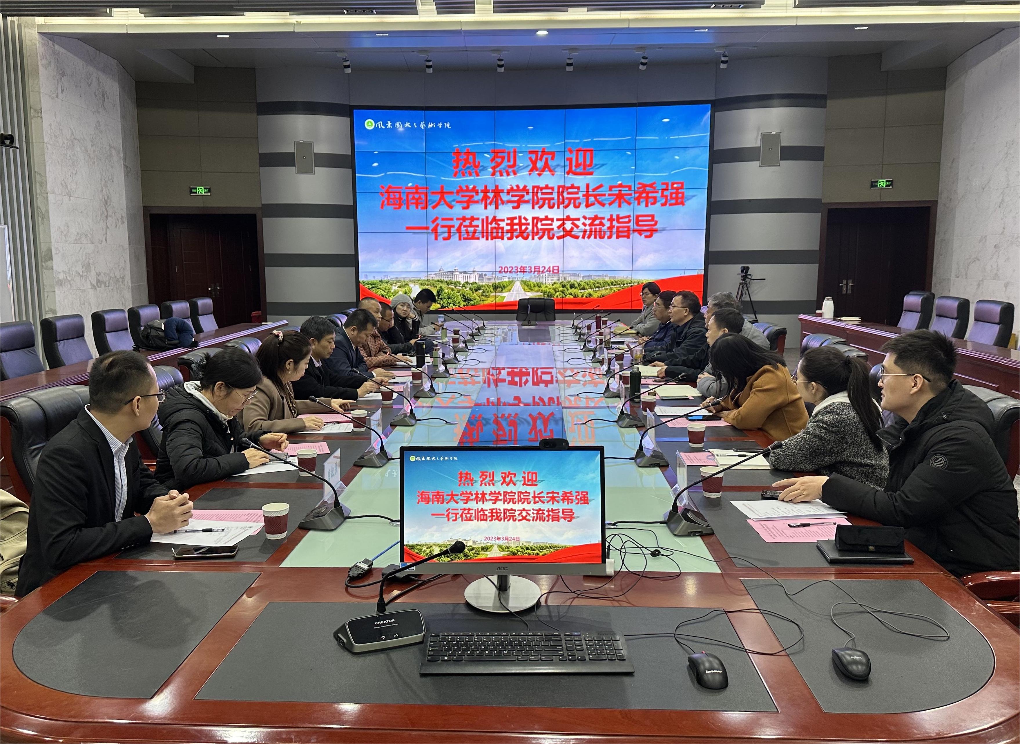 3月24日上午,海南大学林学院院长宋希强一行9人到我院交流座谈。院党委书记侯永华,院长田国行,副院长孔德政、李永华,党政办公室主任刘其梅,园林系主任刘艺平及相关学科教师代表出席座谈会。侯永华主持会议。