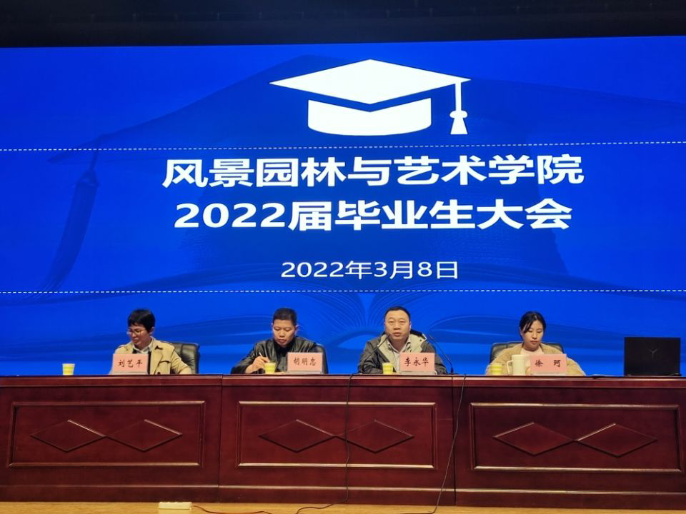 3月8日下午,我院在文化路校区大礼堂召开2022届毕业生大会。院党委副书记胡明忠、副院长李永华、园林系主任刘艺平、院团委书记徐珂出席本次会议。学院2022届全体毕业生参会。会议由徐珂主持。