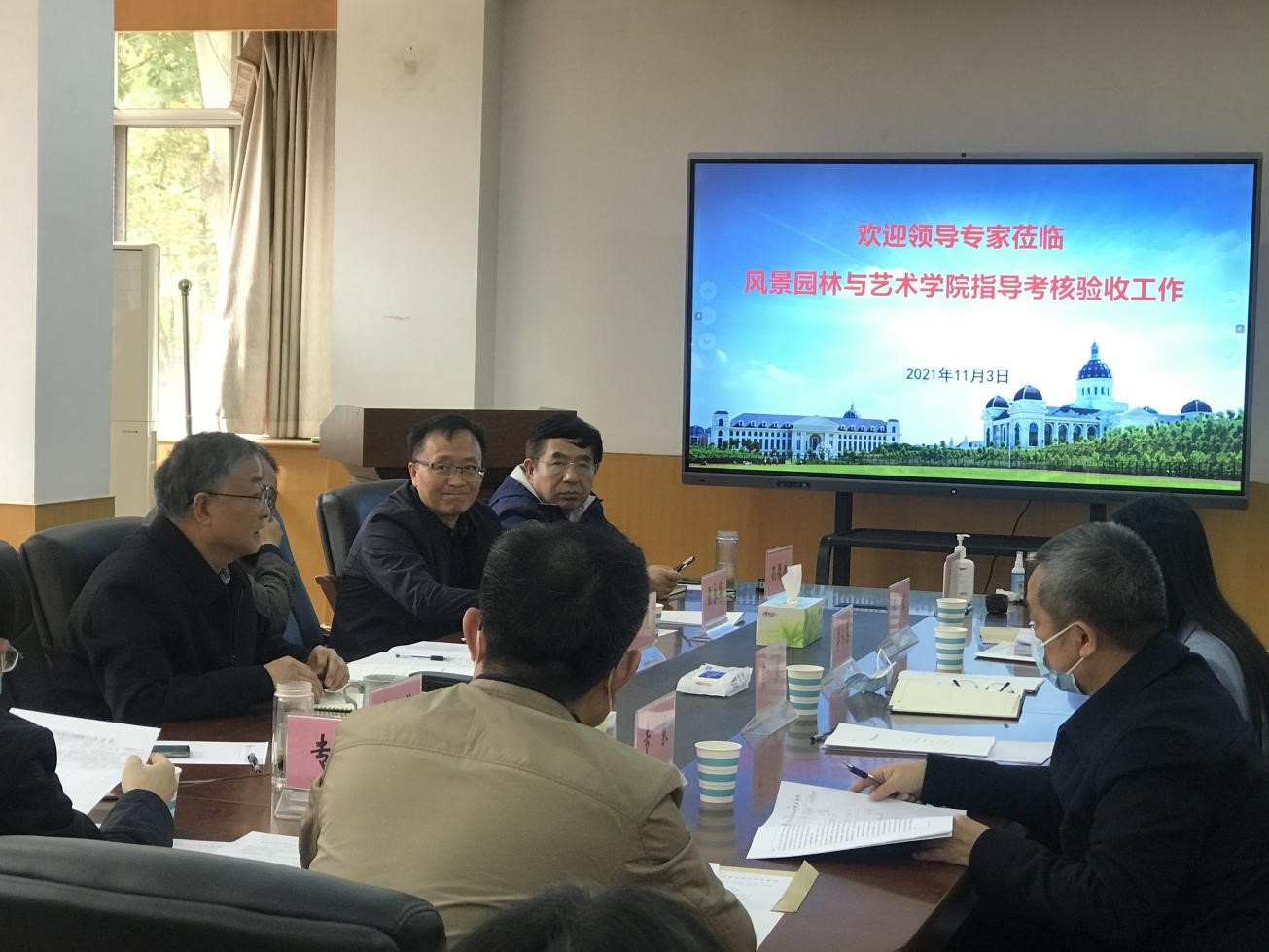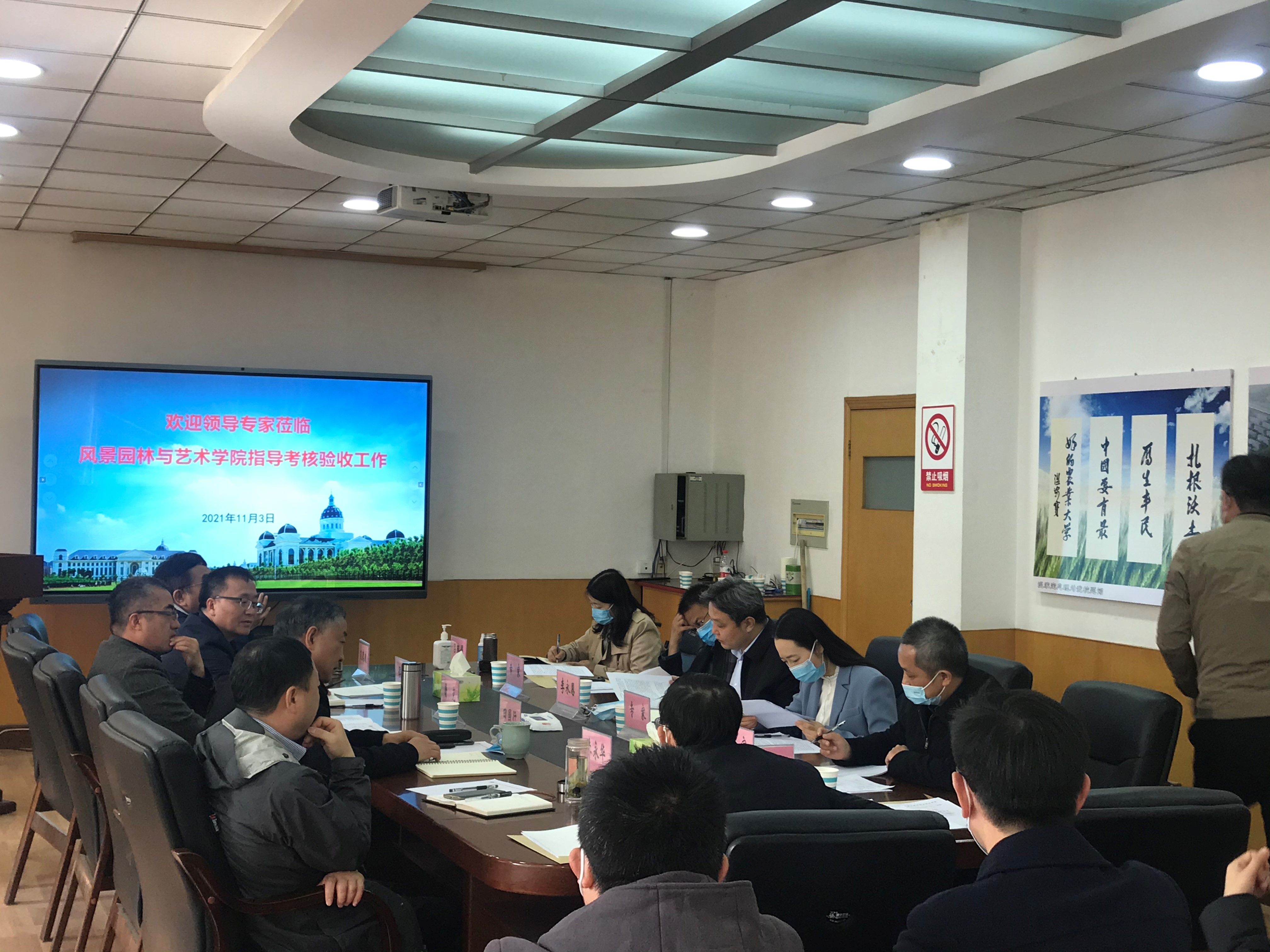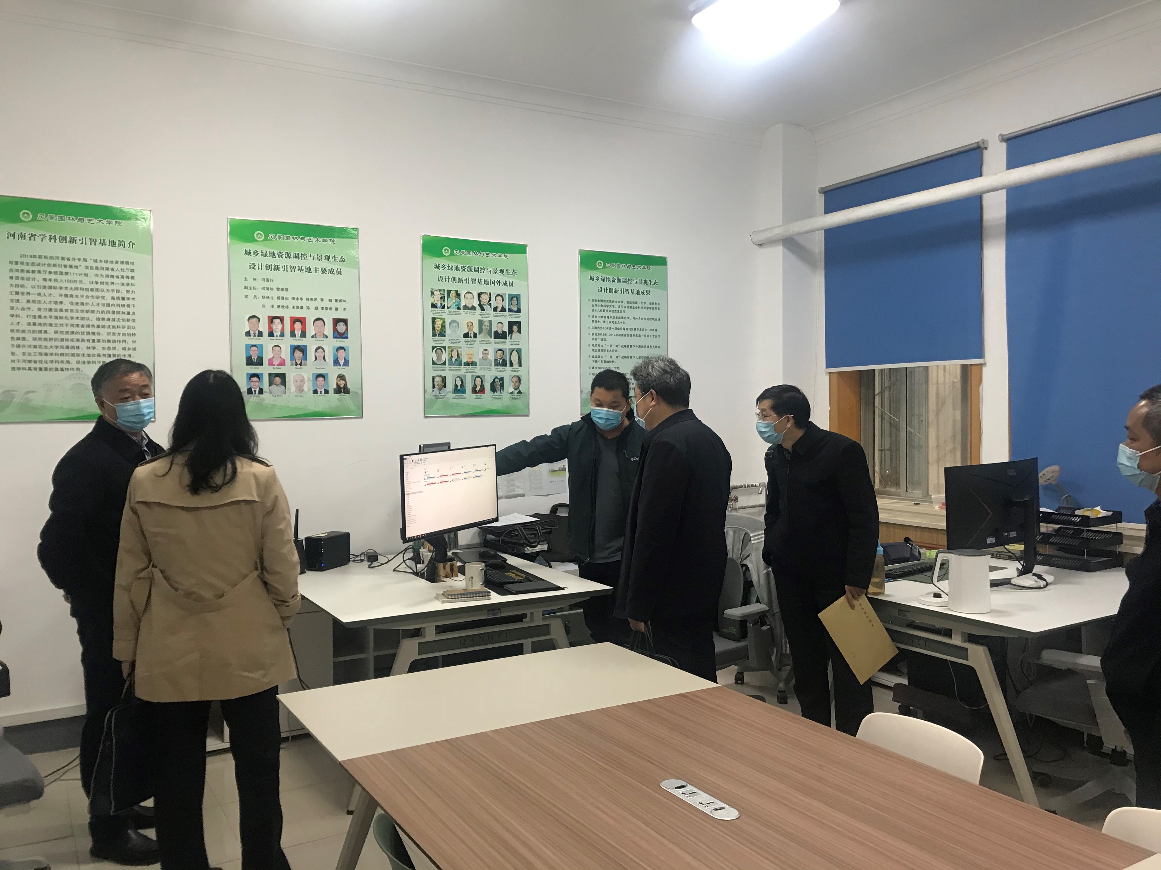 2021年11月3日上午,河南省科技厅外国专家服务处处长李永恩、副处长吕瑞娟及五位专家莅临我校开展河南省省级外专项目考核验收工作,对我院城乡绿地资源调控实验室与景观生态设计学科创新引智基地进行考核验收工作。校国际交流合作处、我院负责人出席会议。