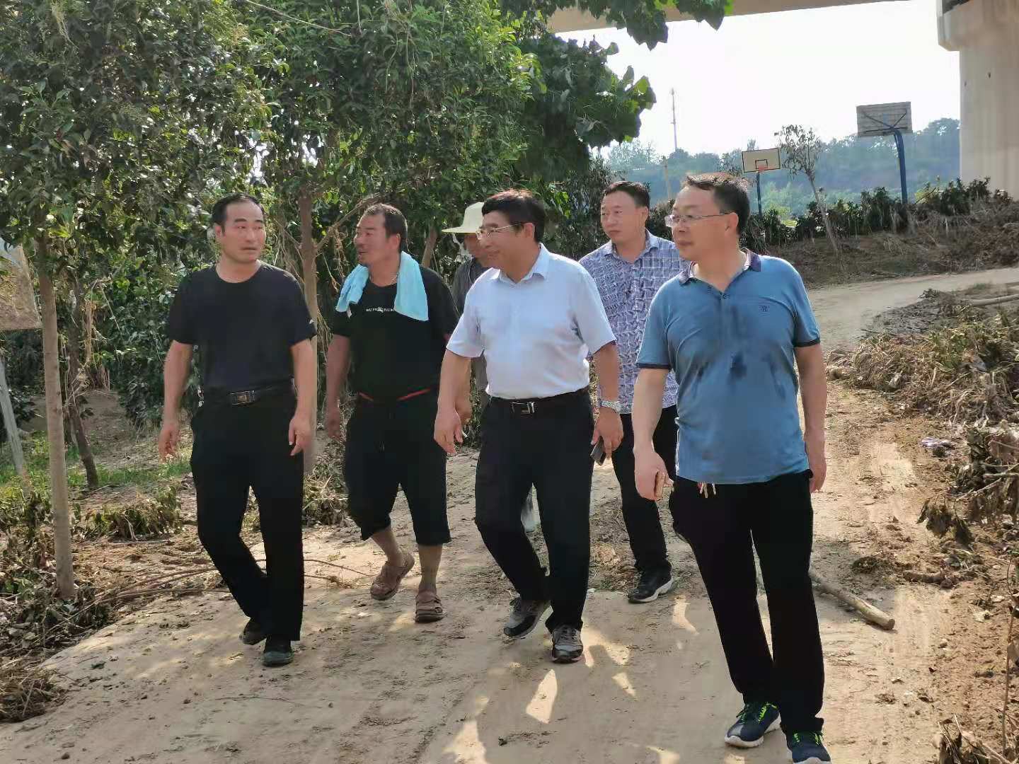 7月26日,风景园林与艺术学院孔德政、李永华、王鹏飞等教授组团赴新郑市指导苗木灾后生产工作。受暴雨影响,新郑市带来福苗圃基地受淹面积270多亩,香樟、桂花、玉兰、榉树、高杆石楠、五角枫等多种苗木受损严重。