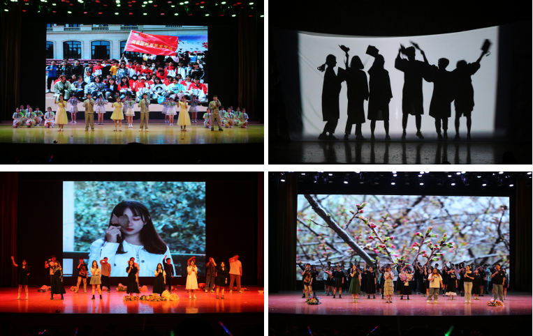 本次晚会由学院毕业班班主任、毕业生及艺术团学生共同参演。园林专业带来的合唱《青苹果乐园》、《起风了》唱响岁月,青春气息扑面而来。风景园林专业的歌曲《凤凰花开的路口》,表达了景艺学子的依依惜别之情。城乡规划专业演绎的音诗画道出了对时光飞逝的感慨,展现出奋发有为的青年志气。环境设计专业的合唱《少年中国说》、《农业路63号的日子》句句铿锵,唱响了景艺学子四年光阴中难以忘怀的回忆。由研究生带来的《研途有你》激励着大家珍惜韶华,勇做攀登高峰的奋进者。毕业班的学生骨干们用《光辉岁月》向学弟学妹们深情告白,提出青年学子担当砥砺奋进的寄语。班主任老师的《书影年华》别具新意,表达出老师们对毕业学子的美好祝愿。学院艺术团带来的现代舞《We Rock》、古典舞《苏幕遮》、歌伴舞《重返17岁》先后登台,用激情与活力的舞姿代表学院学生向即将毕业的学长学姐们表达最诚挚的祝福。