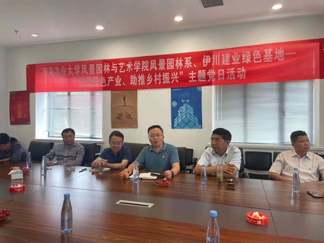 7月1日上午,在举国同庆中国共产党诞辰100周年之日,风景园林系全体教工党员在院党委书记侯永华的带领下赴洛阳伊川建业绿色基地开展“发展绿色产业、助推乡村振兴”主题党日活动,院党委副书记胡明忠、副院长孔德政、副院长李永华、院办主任刘其梅、院团委书记徐珂等参加活动。