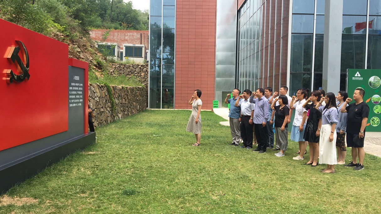 全体党员先后参观了伊川建业绿色基地综合展厅、山飨助农市集、房车营地、研学窑洞长廊、智能温室等建成区域,并在基地主要负责同志的陪同下参观了党建文化展厅,深入了解该支部“七个一刻钟”的先进做法;随后走进抗战史实步道,感受发生在伊川当地的抗日游击历史故事,在原中共伊川县委书记刘世基的事迹简介牌前,当全体党员看到他为了保护重要公文不落入敌手而壮烈牺牲时,禁不住凝神驻足,肃然起敬。走完抗战史实步道后,全体党员面向党旗,举起右手,重温入党誓词。党员们纷纷表示要秉承先烈遗志,不忘初心,立足本职,为党育人,为国育才。