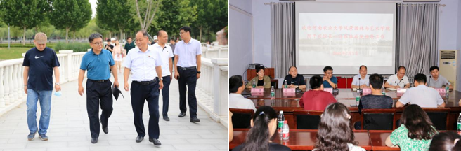 7月1日,河南农业大学风景园林与艺术学院副院长阴予兴,艺术系主任孟滨、党支部书记王娜带领艺术系全体教师,前往商丘师范学院进行考察交流。