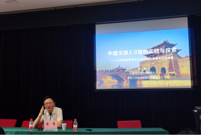 5月19日,华景通文旅研究院院长陈伟应邀到我院做《中国文旅3.0版的实践与探索——文旅融合推动台儿庄古城的修复与文化传承》为题的学术报告,报告会由院长田国行主持。我院及学校其他相关专业师生参加报告会。
