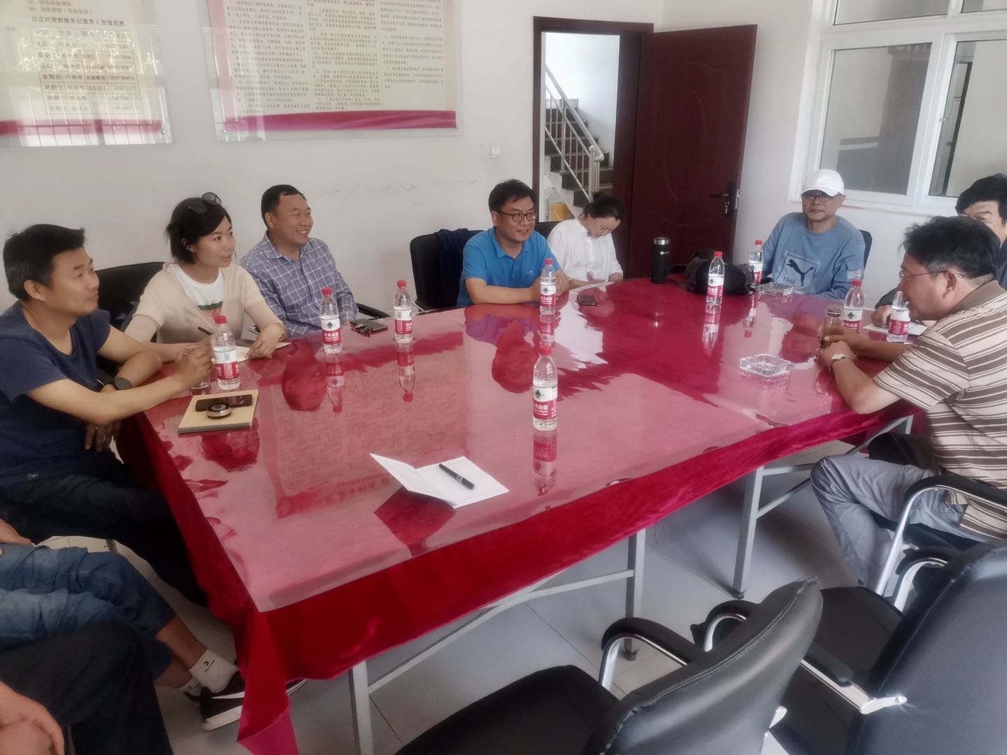 首先村委领导向我院设计团队简要介绍了村庄基本情况、当下村庄存在的问题和发展困境,并就项目合作进展事宜进行了沟通。随后,团队对村庄生产生活生态空间布局、建筑风貌、基础设施、产业现状等进行了实地考察。考察结束后双方就下一步各自任务内容与具体要求进行了深入交流。副院长阴予兴总体上介绍了我院开展乡村建设项目的总体思路、我院参与过的乡村建设项目情况、下阶段工作具体安排要求。院长田国行指出,在全国实施乡村振兴战略的时代背景下,参与项目的老师们要深入乡村,在项目实践中激发创作灵感和设计灵感,并将项目实践内容及时总结上升为专业理论,提升专业解决问题能力,更好地服务于教学和科研工作,在河南乡村振兴中发挥重要作用。