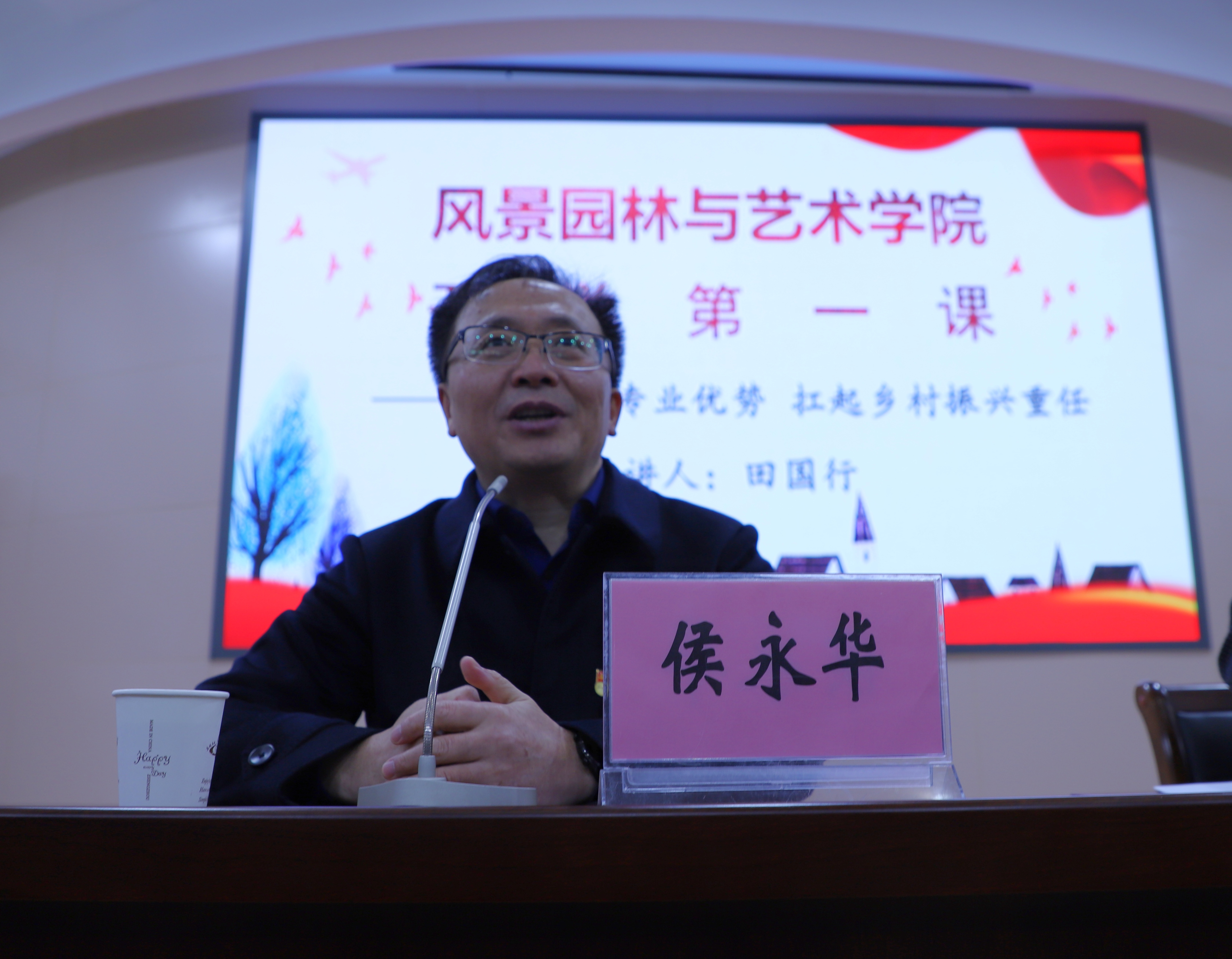田国行围绕脱贫攻坚和乡村振兴战略的成就、意义、影响、“十三五时期”取得的成绩以及“十四五规划”目标等内容进行深入浅出的讲解,并结合学院情况对我院师生提出期望和要求。他表示,在党的坚强领导下,我国坚持“一个充分、两个坚持、三个结合”的中国特色扶贫路,全部实现“两不愁三保障”,取得了举世瞩目的成就。同时,中国的脱贫攻坚创造了人类减贫史上的奇迹,为全球减贫治理提供了中国方案。学院成立的河南省风景园林国际联合实验室、城乡绿地资源调控与景观生态设计学科创新引智基地等合作机构,为脱贫攻坚贡献了景艺智慧。他强调,做好乡村振兴与脱贫攻坚的有机衔接,景艺学院责无旁贷,大有可为。他要求,一是要把握时代脉络,勇担时代责任,推动乡村绿色可持续发展;二是勇于挑战自我,把握机遇,不断提升自身综合能力;三是要持续发挥专业特色优势,以为人民服务为宗旨,致力于改善人居环境,为乡村振兴战略提供人才与技术支撑。最后,他表示,我院将始终坚持以习近平新时代中国特色社会主义思想为指导,探讨守护自然山水、传承地域文脉、实现公众福祉的理论、方法、技术和手段,真抓实干、埋头苦干,以文化人、以文育人,着力培养德智体美劳全面发展的社会主义现代化强国的建设者和接班人。