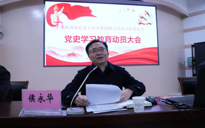 侯永华强调,要深入学习贯彻中央、省委和学校党史学习教育动员大会精神,引导全院上下学党史、悟思想、办实事、开新局,以更加高昂的精神状态和奋斗姿态,加快推进学院事业高质量发展,以优异成绩庆祝建党100周年。随后,侯永华就学院开展党史学习教育提出了三点要求:一是深刻领悟党史学习教育的重大意义,总结历史经验,在学习中砥砺初心使命、坚定前进方向、推进自我革命;二是明确党史学习教育的重点任务,要真正学懂弄通做实党的创新理论,不断提高政治判断力、政治领悟力、政治执行力,增强学习党史教育的思想自觉和行动自觉;三是立足学院实际,坚持正确方向,开展主题活动,把握主题路线与本质,创新方式方法,勇担职责使命,推进学院发展。