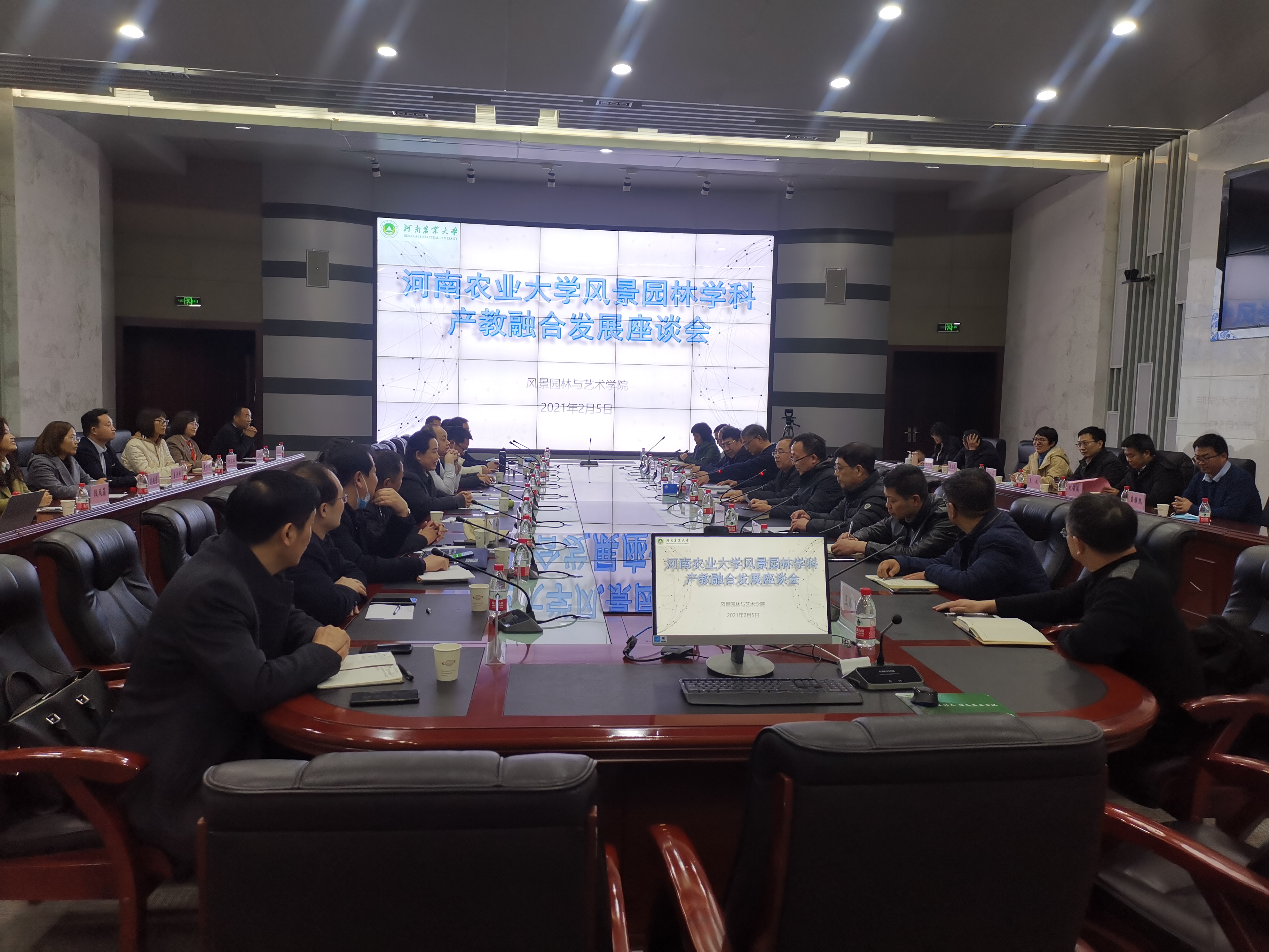 2月5日下午,风景园林与艺术学院举办主题为“企业走进课堂,教授走进企业”--风景园林学科产教融合发展座谈会,河南省城乡规划设计研究总院有限公司、河南贝利得花卉艺术工程有限公司、河南省绿洲园林有限公司等27位企业负责人及高管应邀出席。副校长尚富德,风景园林与艺术学院全体班子成员、教授和系主任代表参加座谈。座谈会由院党委书记侯永华主持。