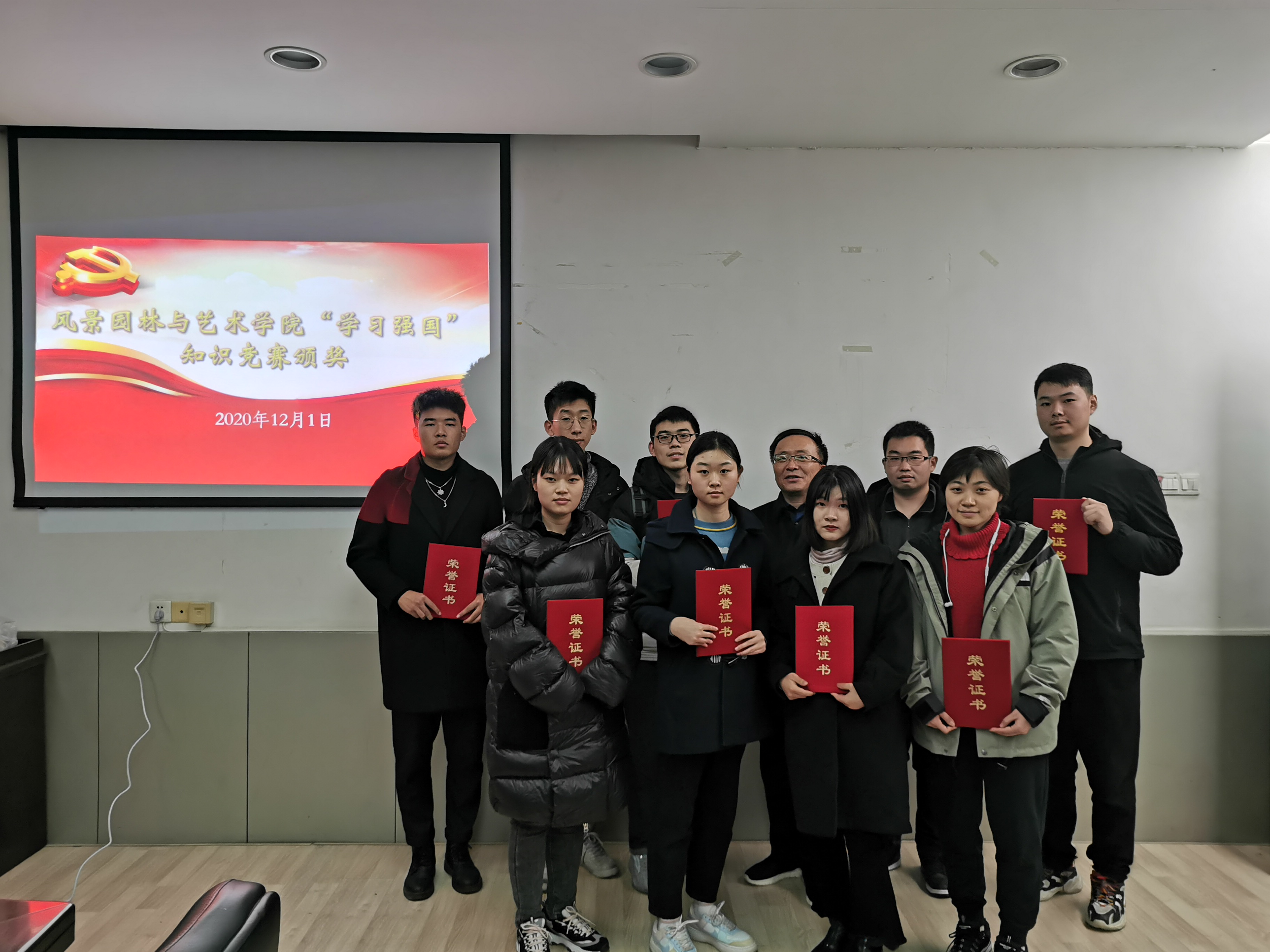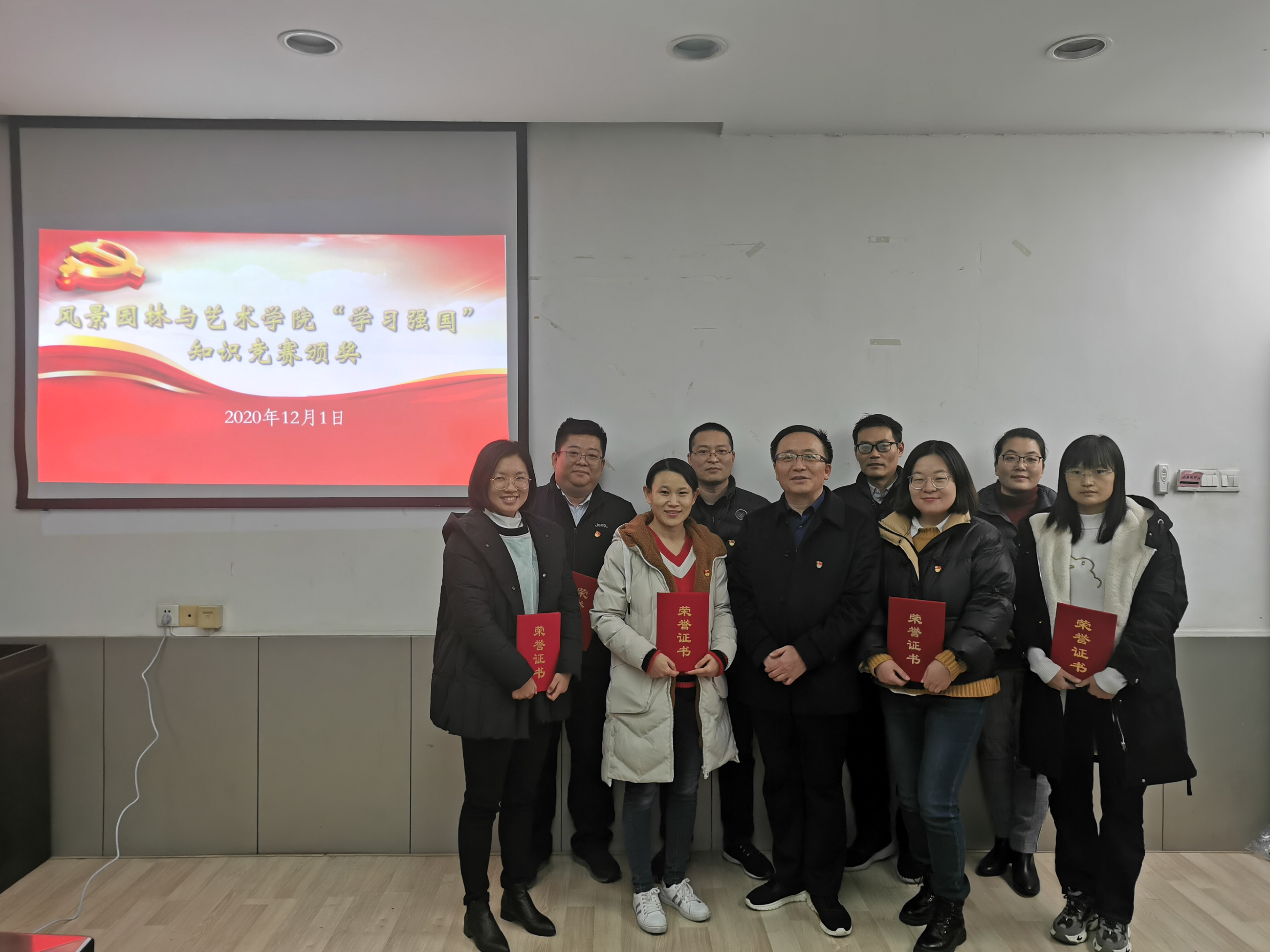 为深入学习贯彻党的十九届五中全会精神,进一步激发广大师生的学习工作热情,我院在全体师生党员中开展“学习强国”积分争上游知识竞赛,迅速掀起全院学习热潮。12月1日,我院于2号楼二楼会议室举行“学习强国”知识竞赛颁奖仪式。院党委书记侯永华出席仪式,并为获奖师生颁奖。