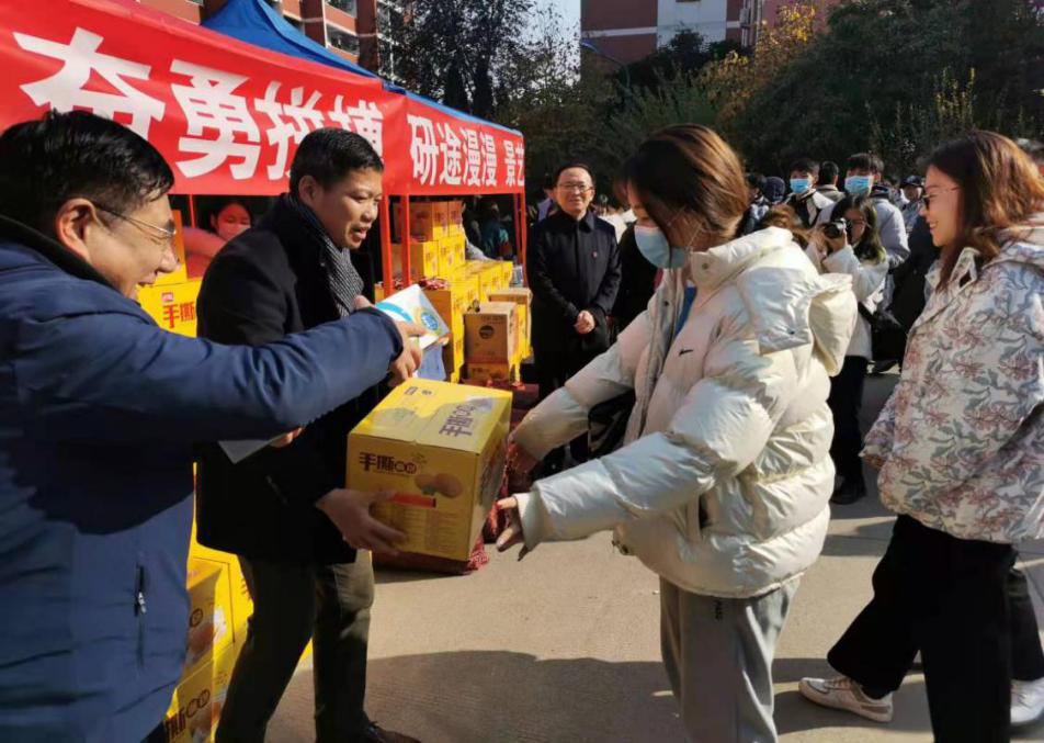 为鼓励考研学子积极备考,调整状态。12月4日,我院在文化路校区桃李园公寓中心花坛举办“助力考研 温暖同行”活动。院党委书记侯永华,院党委副书记胡明忠,副院长孔德政出席此次活动。全院考研学子参加此次活动。