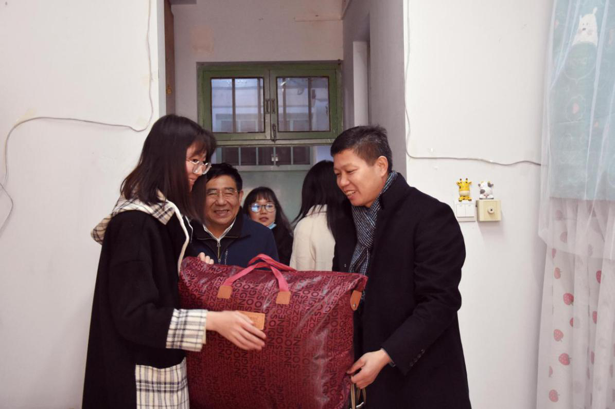 为贯彻落实国家资助政策,关心关注家庭经济困难青年大学生成长成才,打造思想有滋润、生活有温度的学院氛围。12月4日,我院于文化路校区桃李园公寓开展“冬季送温暖”活动。院党委书记侯永华,院党委副书记胡明忠,副院长孔德政出席活动。