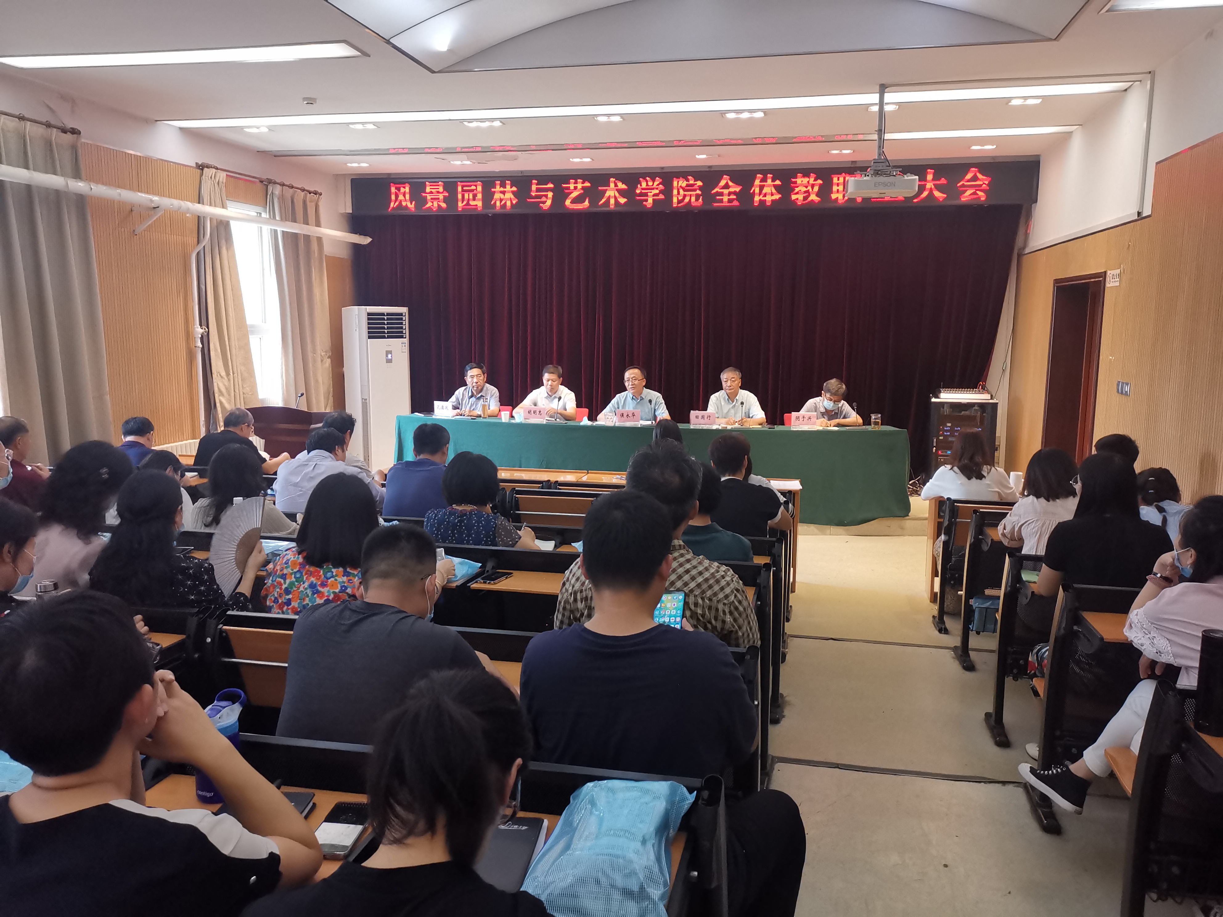 9月1日下午,风景园林与艺术学院独立建院后第一次全体教职工大会在2号楼四楼学术报告厅召开,安排部署新学期工作和疫情防控工作。院党委书记侯永华、院长田国行、党委副书记胡明忠、副院长孔德政、阴予兴及全体教职工参加会议。会议由侯永华主持。