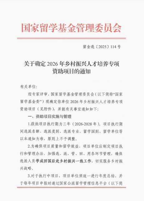 近日,从国家留学基金管理委员会传来喜讯,由我院申报的《国际视野下新农村乡村规划人才培养专项》项目获得全额、全员资助,是我院在乡村振兴人才培养领域取得的又一重要成果!