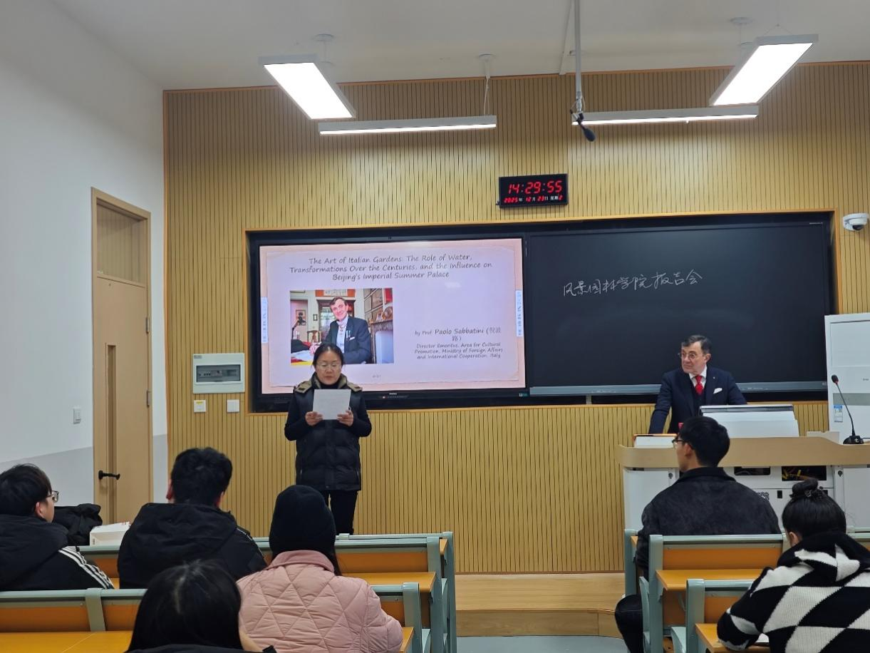 12月23日,我院特邀意大利佩鲁贾美术学院保罗・萨巴蒂尼(倪波路)教授作题为“意大利的花园艺术:水元素、迷宫;几个世纪的变迁及其对圆明园的影响”的专题报告会。学院师生代表参会。会议由副院长张开明主持。