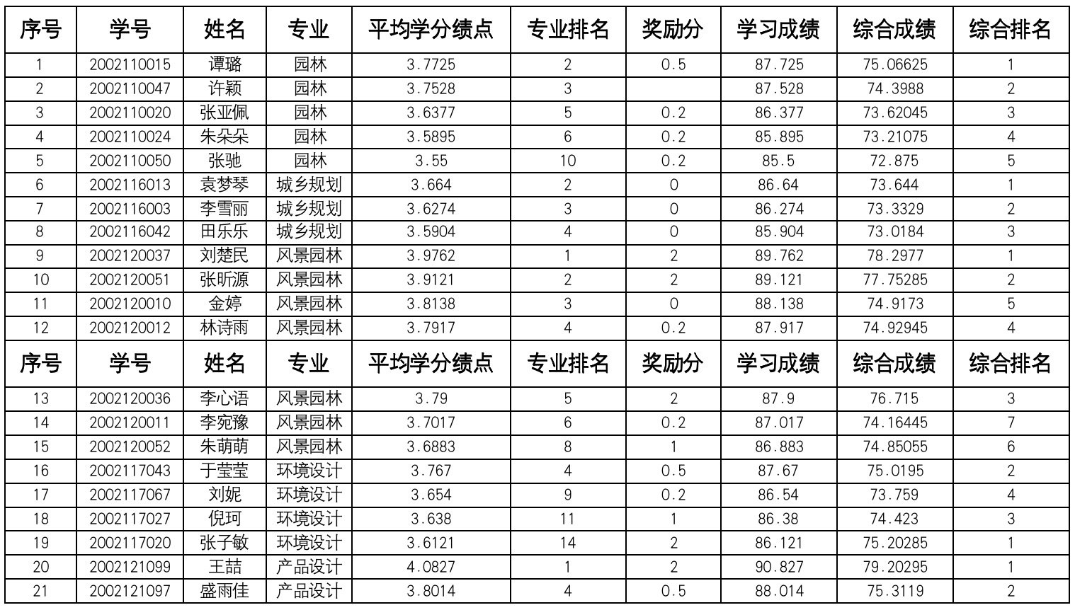 2023年风景园林与艺术学院推荐优秀应届本科毕业生免试攻读研究生名单公示
