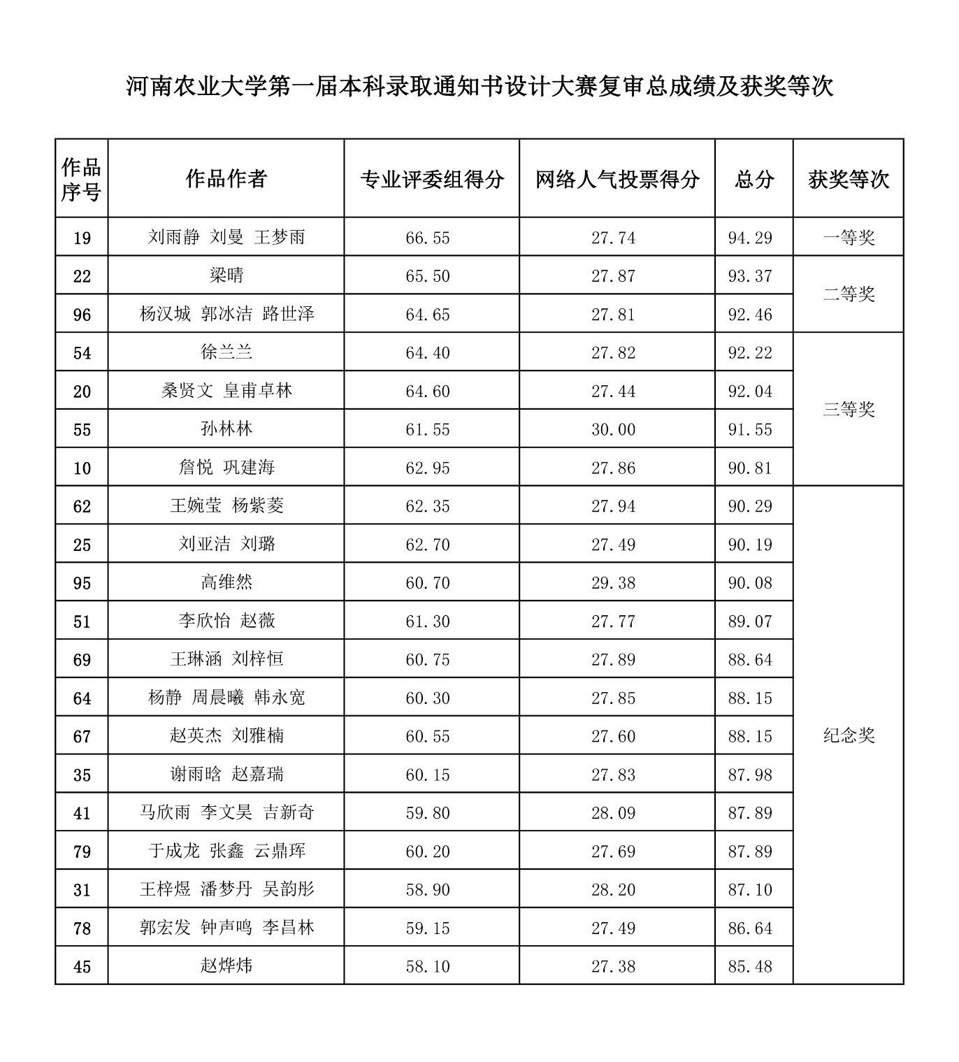 根据《河南农业大学关于举办第一届本科录取通知书设计大赛的通知》精神,由河南农业大学招生办公室和学生处主办、河南农业大学风景园林与艺术学院承办、河南农业大学风景园林规划设计院协办的我校第一届本科录取通知书设计大赛复审工作已经全部完成。现将获奖作品公示如下。