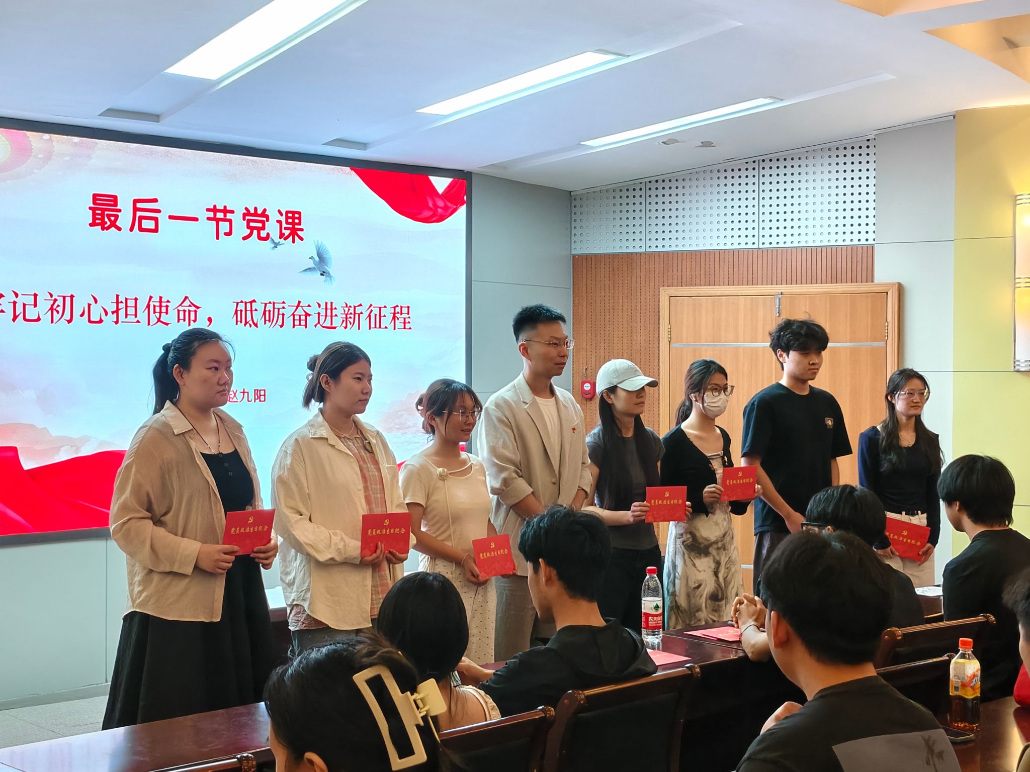 赵九阳以“牢记初心担使命,砥砺奋进新征程”为主题,围绕习近平新时代中国特色社会主义思想的核心要义,紧密结合新时代党和国家事业发展要求,系统阐述毕业生党员应当具备的政治品格与使命担当。指出,作为即将踏入社会的毕业生党员,一是要继续加强学习,不断提升自己的综合素质和能力。不断更新知识结构和技能水平,以适应时代的发展和社会的需求;二是要勇于担当作为,积极投身实践和社会服务,用实际行动践行党的宗旨和理念。随后,赵九阳为毕业生党员代表颁发“政治生日卡”,激励大家铭记政治身份,坚定理想信念。