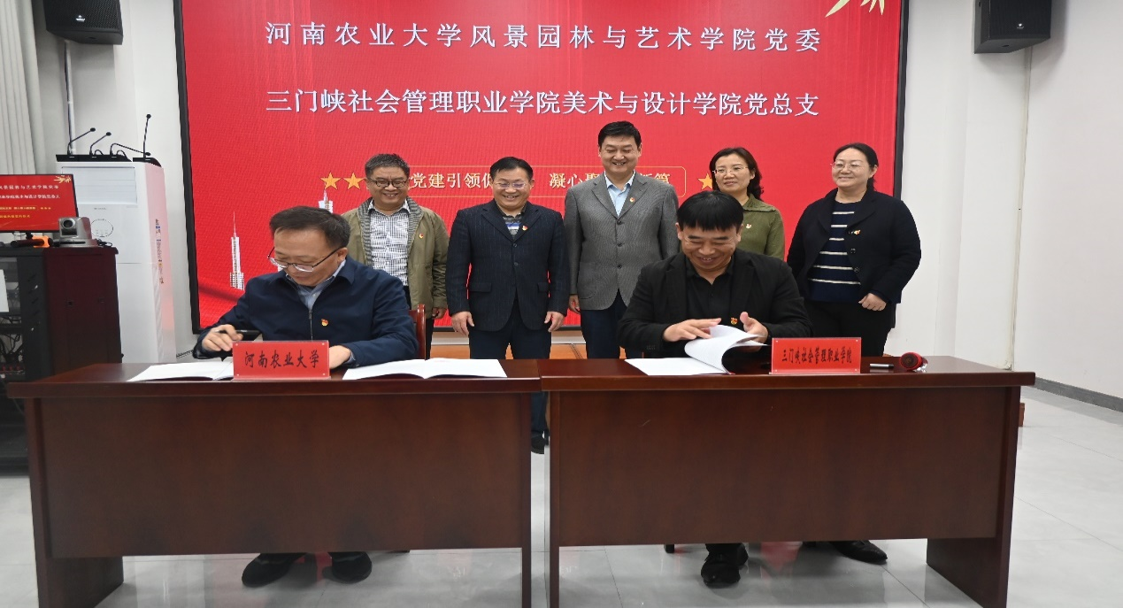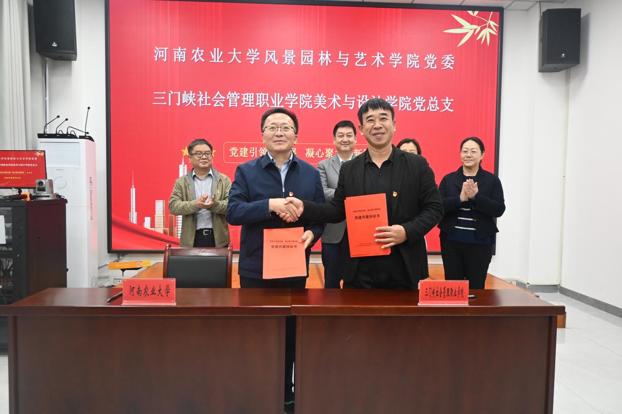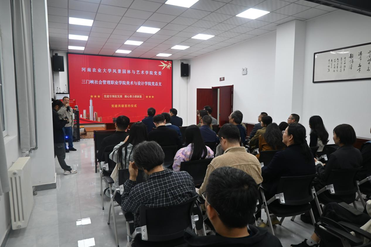 20日下午,侯永华一行抵达三门峡社会管理职业学院。学院党委与三门峡社会管理职业学院美术与设计学院党总支举行党建共建签约仪式,三门峡社会管理职业学院美术与设计学院党总支书记宁春峰与院党委书记侯永华共同签订党建共建协议。三门峡社会管理职业学院党委书记李平,党委副书记、副校长程金磨,侯永华、田向阳以及三方党员同志参加仪式。随后,三方以“党建引领促发展 凝心聚力谱新篇”为主题,进行了座谈交流,介绍了各单位近年来党组织建设情况与主要举措,交流了充分发挥基层党组织战斗堡垒作用和党员先锋模范作用、推动基层党组织创先进、共产党员争优秀等方面的经验做法。