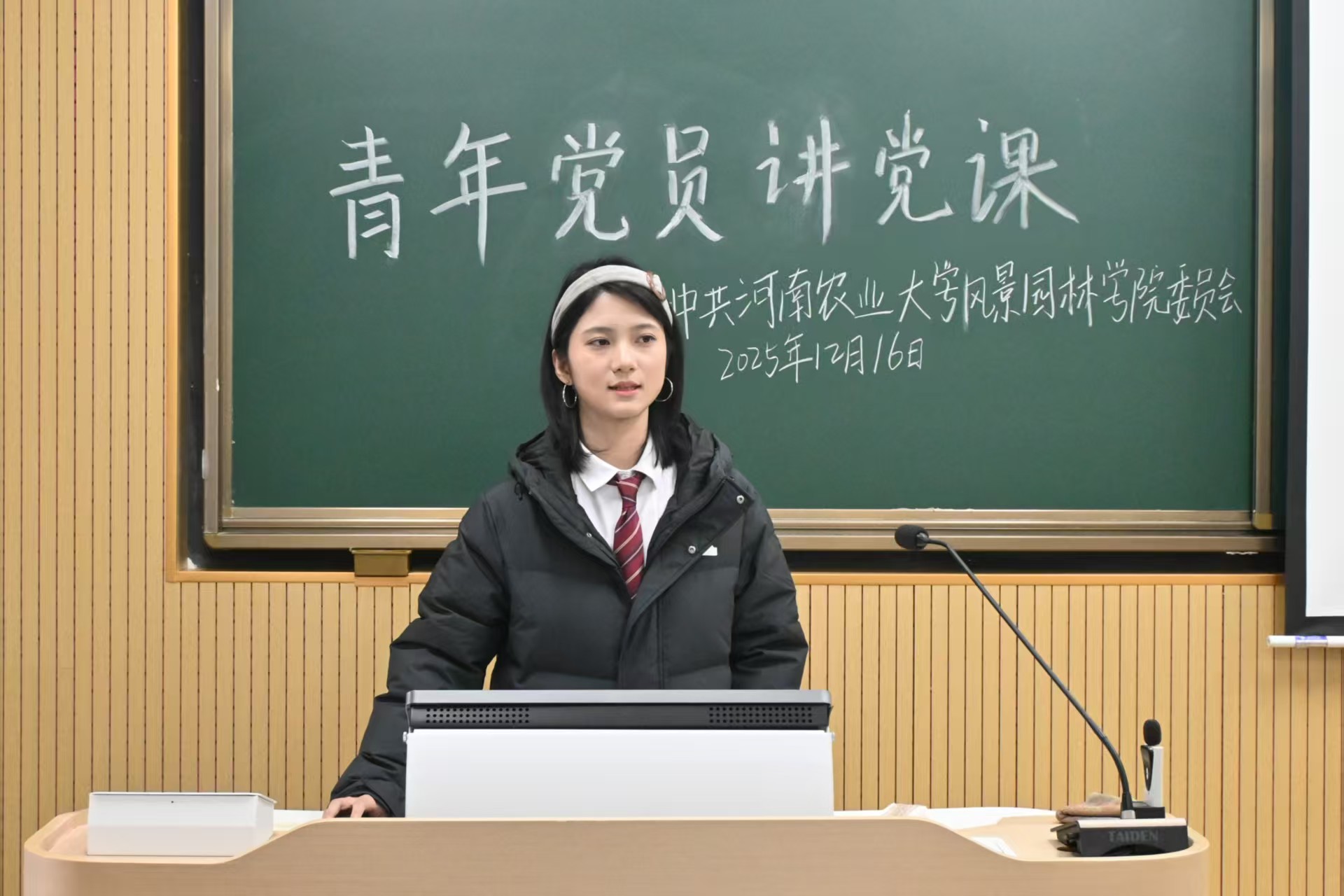 12月16日,我院第三期 “党建引领成长” 主题党课在文化路校区3号楼104教室成功举办。本次党课以 “奋斗点亮青春” 为核心导向,特别邀请风景园林学硕专业学生党支部郭睿和建筑类专业学生党支部梁佳欣担任主讲人,学院 90 余名学生党员、入党积极分子及各学生干部代表参与学习。